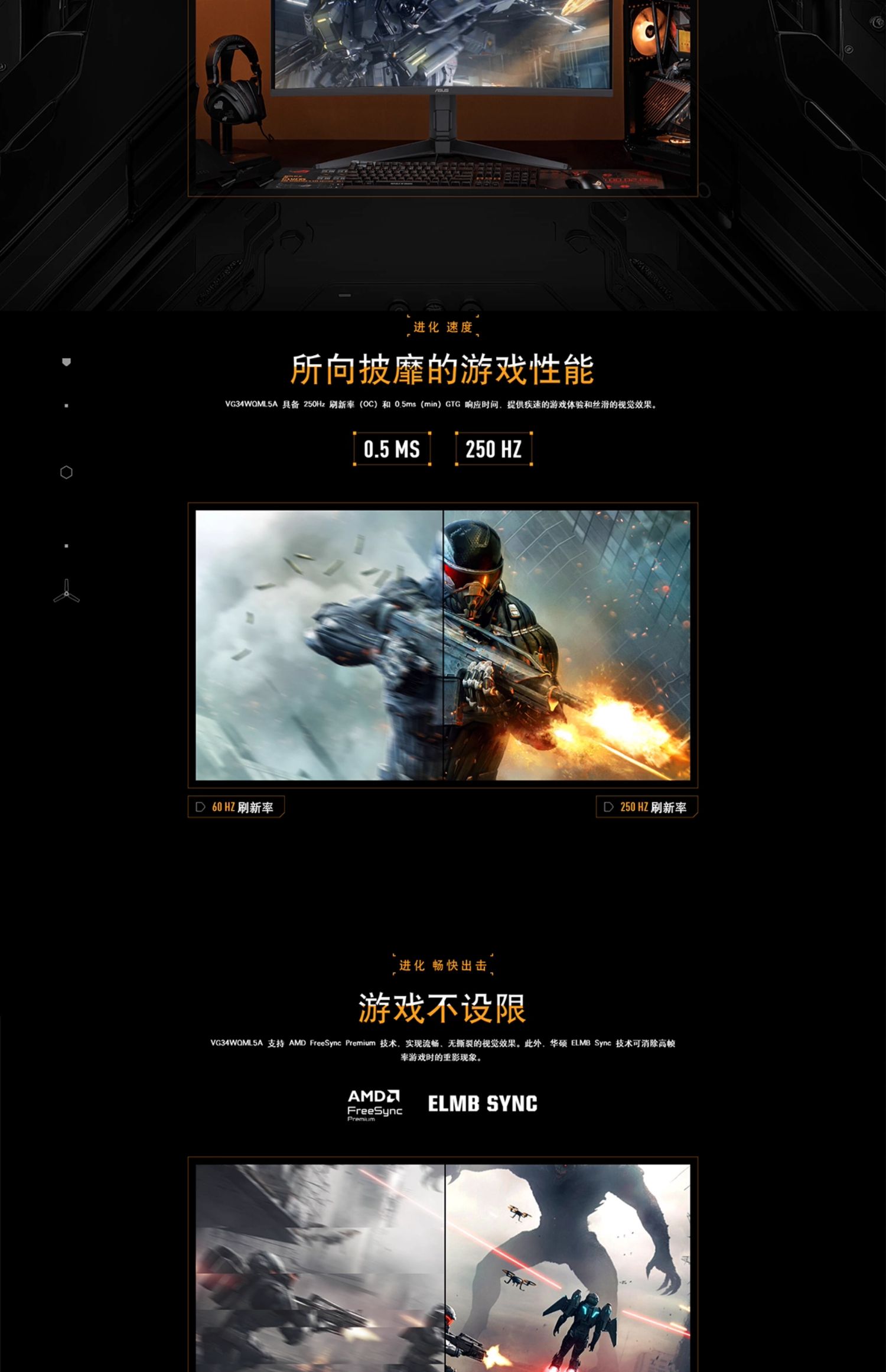 • "VG34WQML5A 곡선형 스트립 피쉬 스크린 34"" 2K 250Hz"