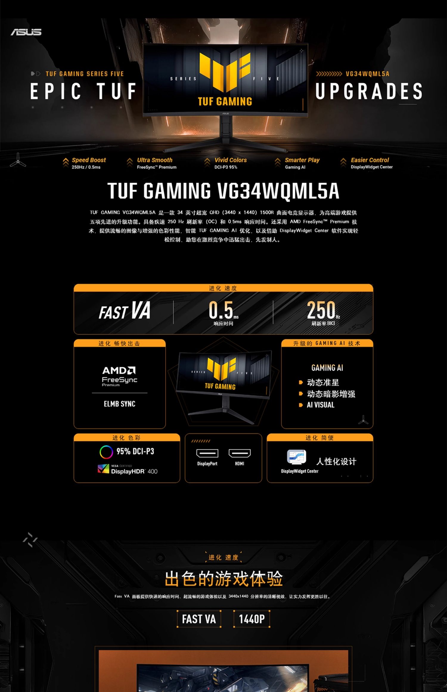 TUF War Shadow VG34WQML5A 34inch 준 4K 250Hz e-스포츠 모니터 1500R 곡선 피쉬 스크린스토어 가기