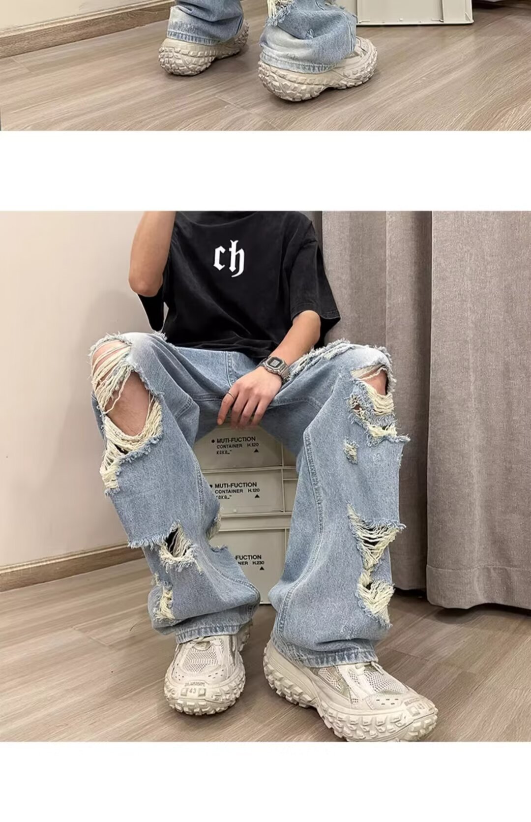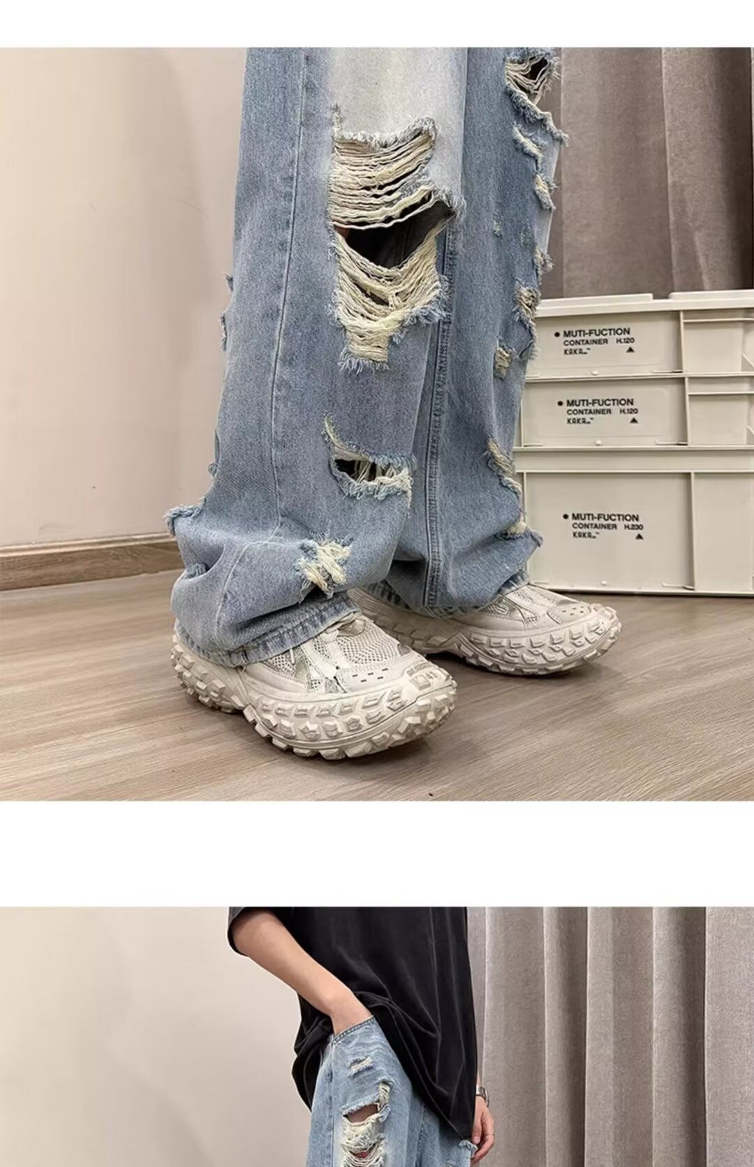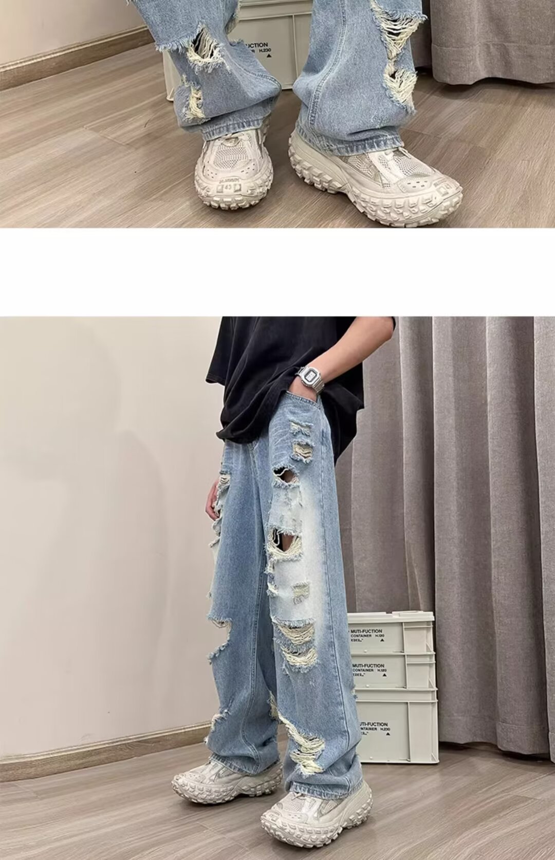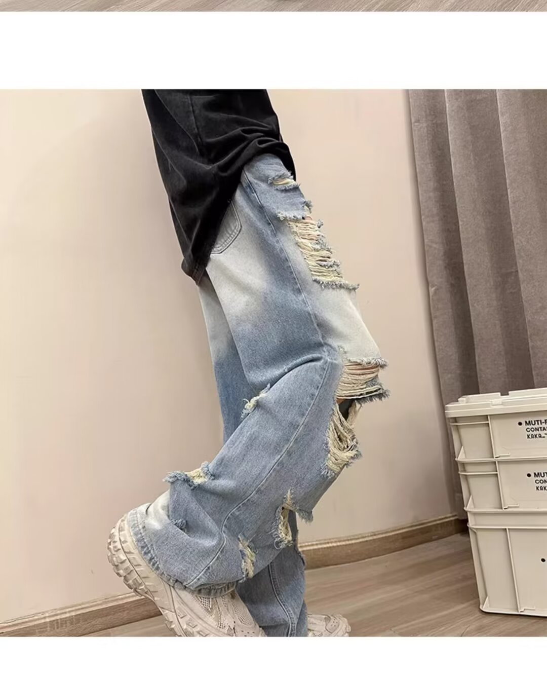 아메리칸 워싱 찢어진 청바지 남성 트렌디 브랜드 인 하이 스트리트 베이비 팬츠 봄, 가을 핸섬 루즈 와이드 팬츠스토어 가기