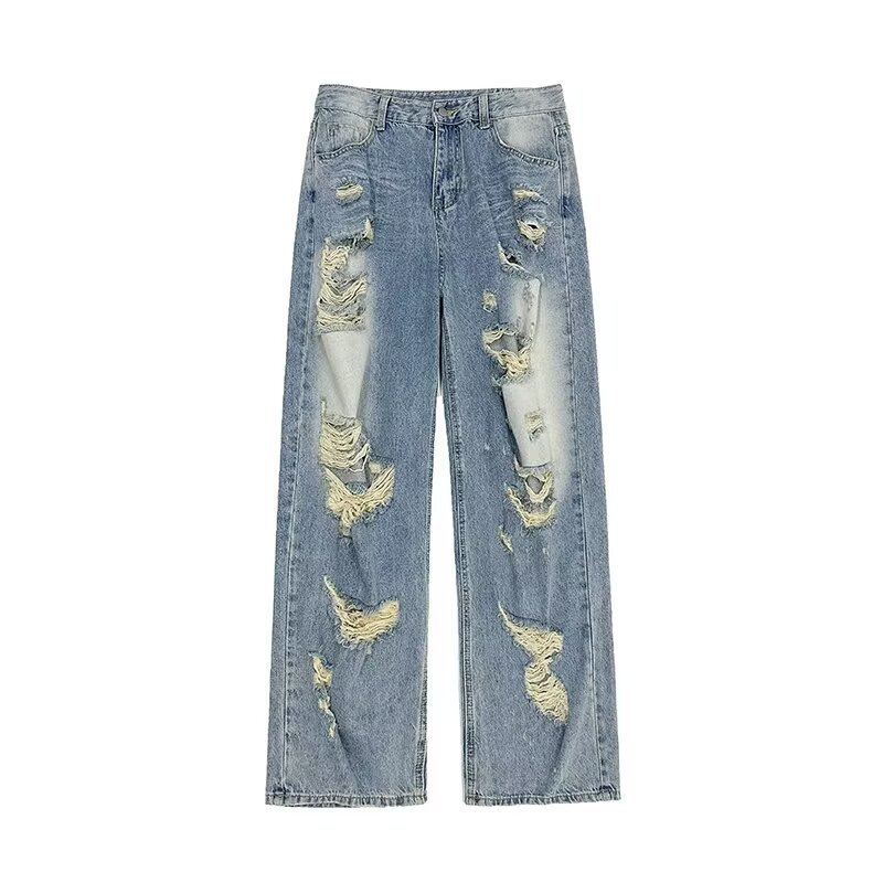 아메리칸 워싱 찢어진 청바지 남성 트렌디 브랜드 인 하이 스트리트 베이비 팬츠 봄, 가을 핸섬 루즈 와이드 팬츠