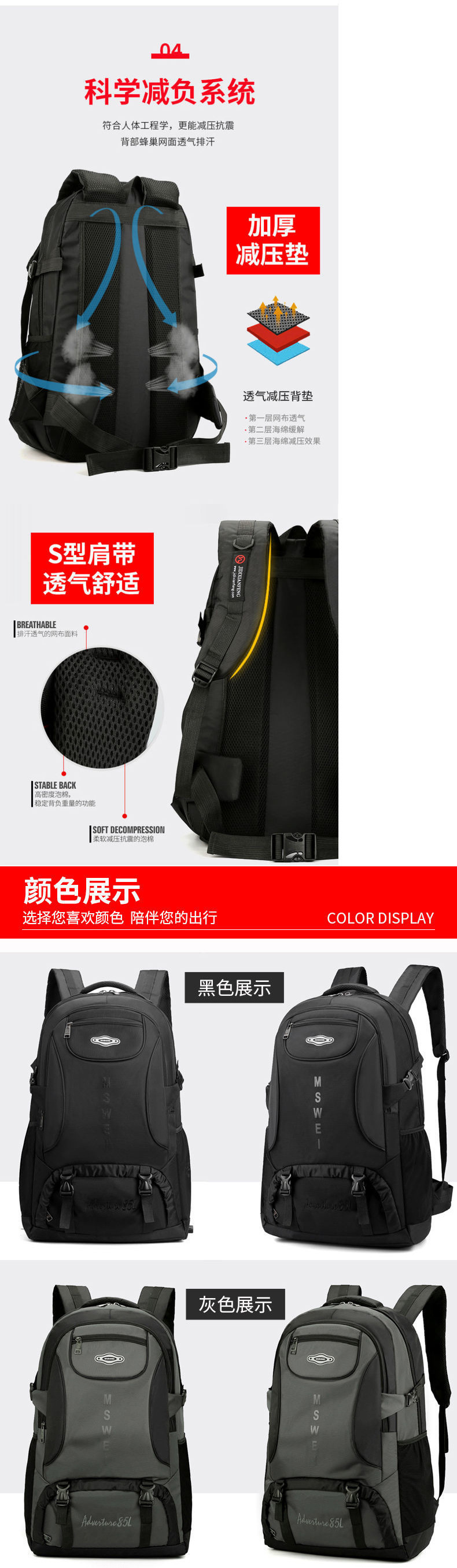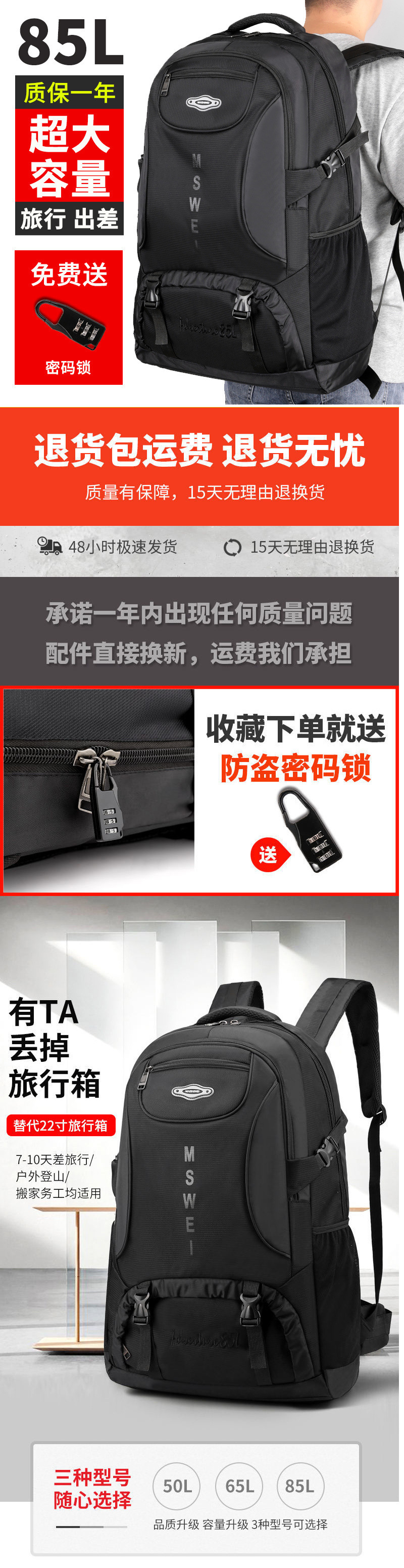 • [블랙 85L 강화 업그레이드 버전] 충전 + 고정 스트랩