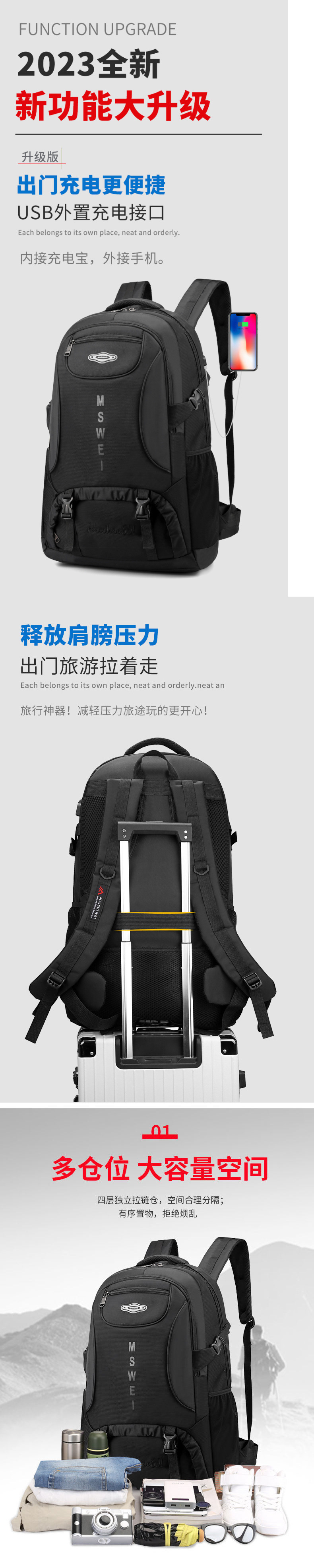 배낭 남성용 대용량 배낭 여성용 야외 등산 가방 출장 수하물 가방 방수 스포츠 학교 가방 남성용 여행 가방