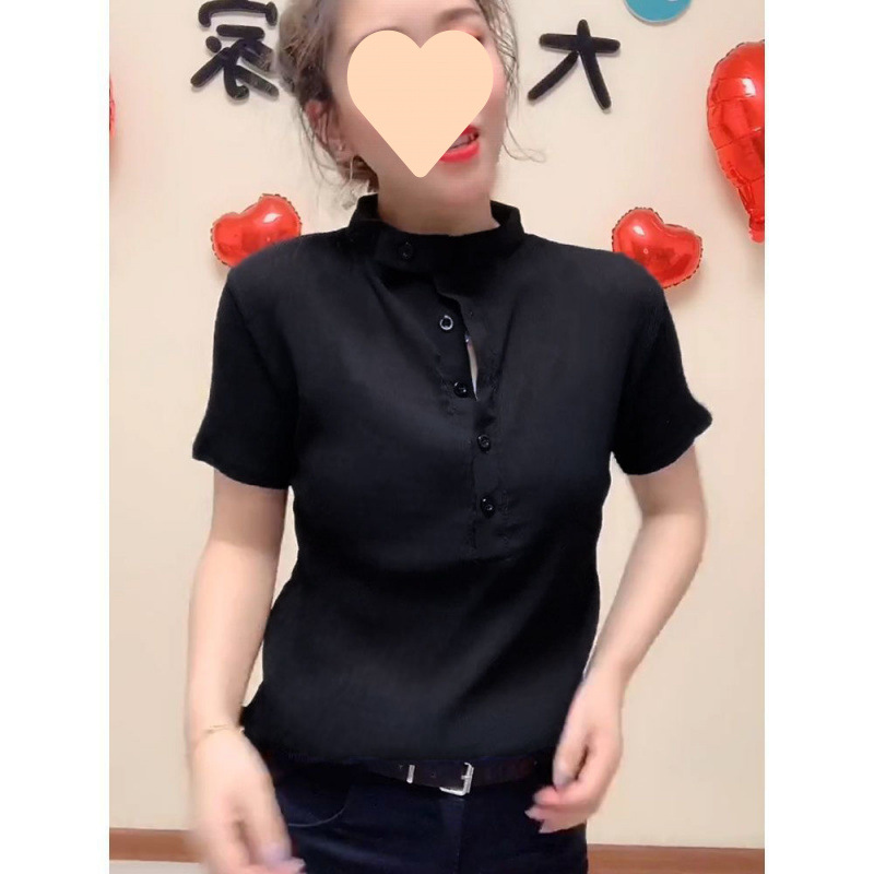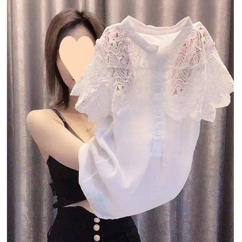 여성용 여름 중공 레이스 탑, 살짝 비치는 반팔 쉬폰 셔츠, 빅사이즈 뚱뚱한 배 커버, 패셔너블한 셔츠, 반팔 셔츠스토어 가기