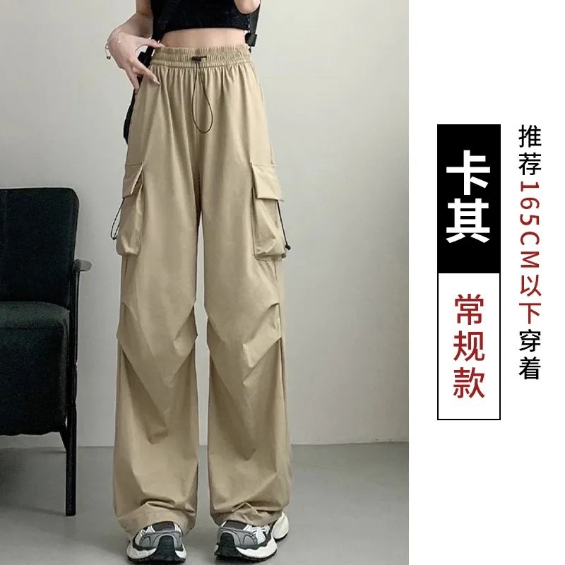 145 여성용 소형 속건성 작업복 봄, 가을 와이드 팬츠 하이 웨이스트 캐주얼 스트레이트 150 하이킹 스포츠 바지스토어 가기