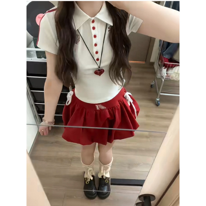 [재고 있음] 2025 여름 신작 한국 스타일 틈새 심플 하이 웨이스트 버블 스커트 여성용 캐주얼 루즈 스커트
