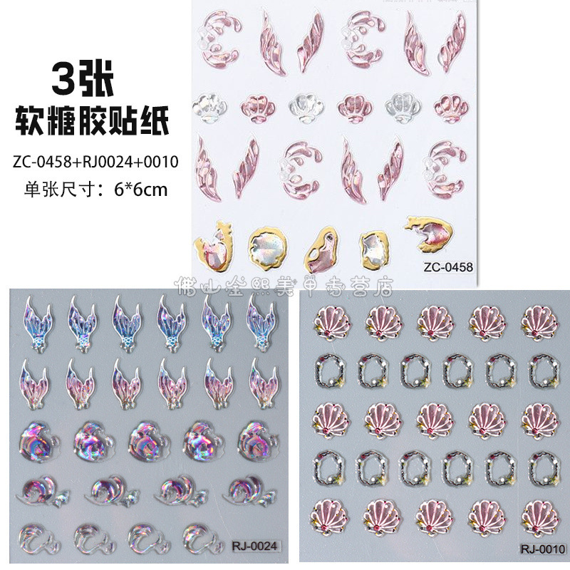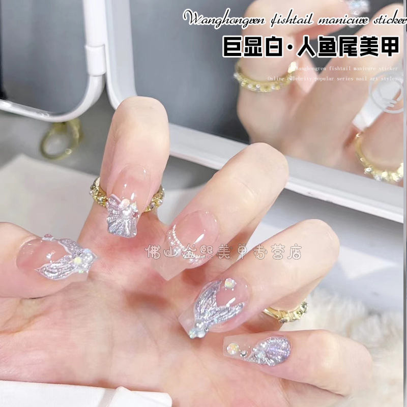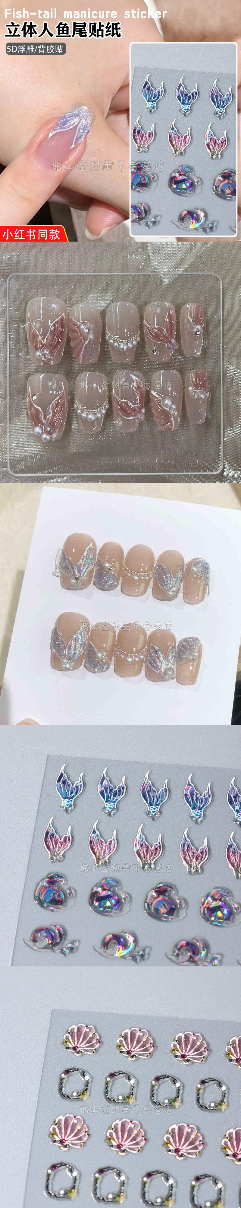 새로운 인터넷 연예인 입체 인어 꼬리 네일 아트 스티커 ins 스타일 여름 판타지 인어 꼬리 퐁당 접착제 네일 스티커스토어 가기