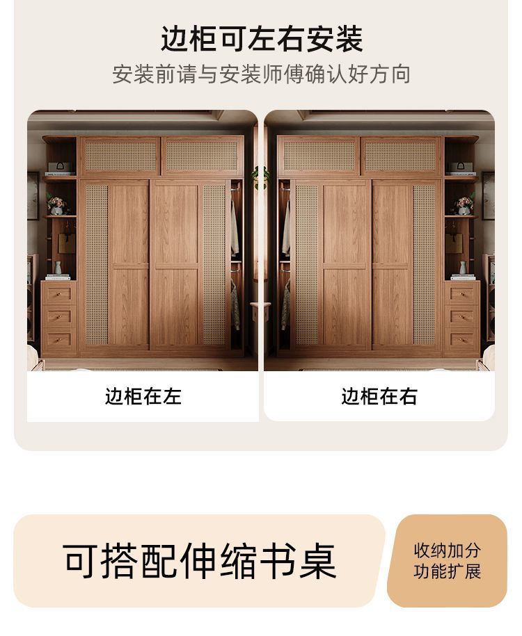 • 1.8m 옷장 + 사이드 캐비닛 [방진 등나무 문]