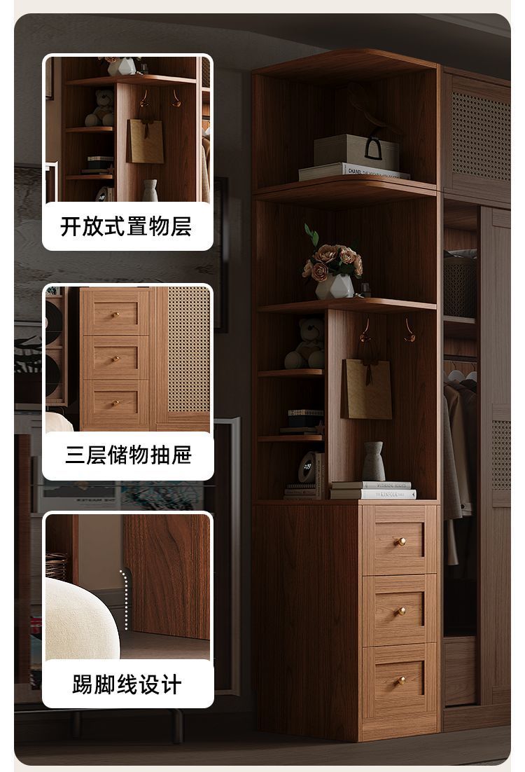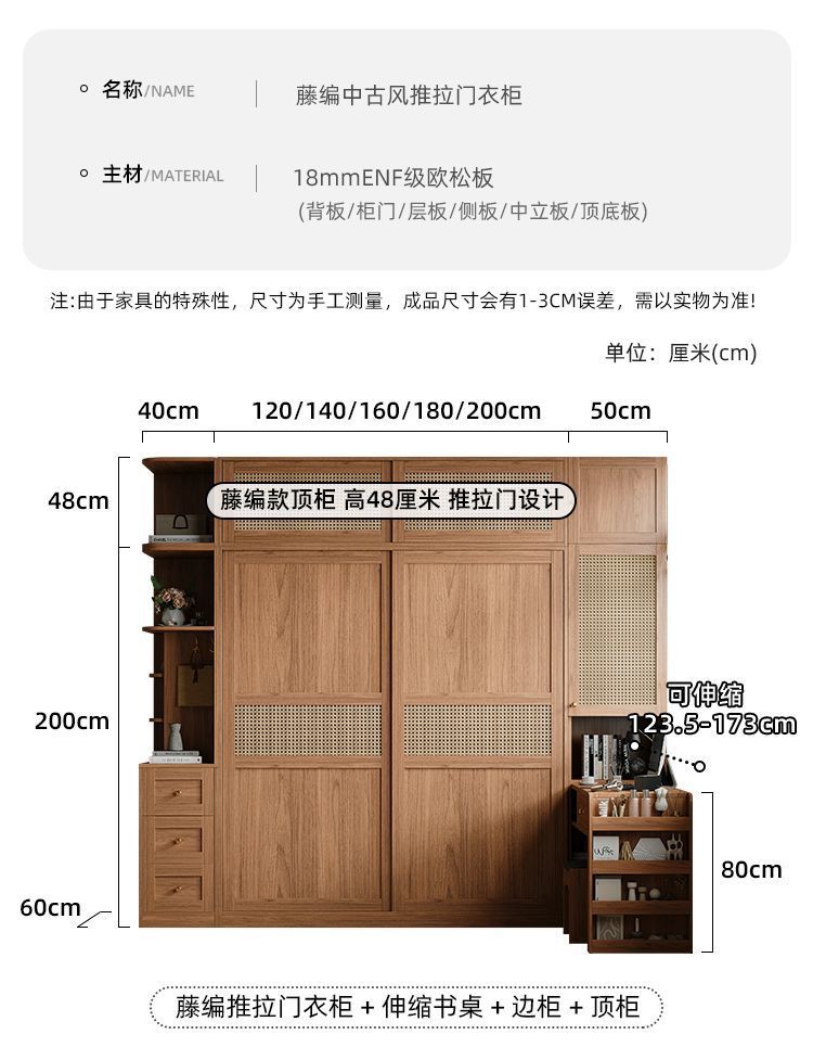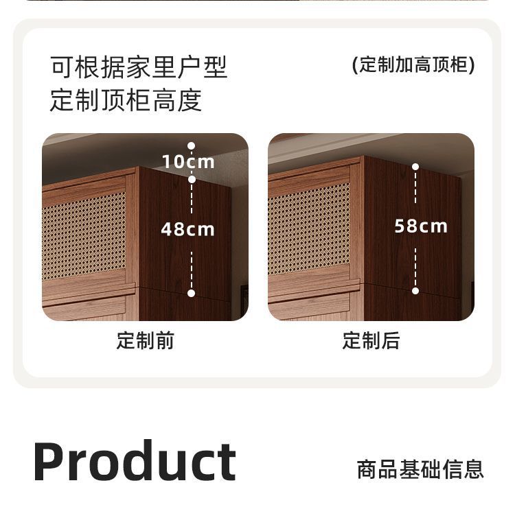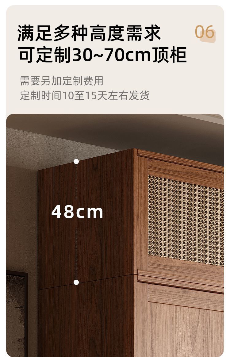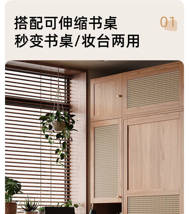 • 1.8m 옷장 + 사이드 캐비닛 + 상단 캐비닛 [방진 등나무 문]