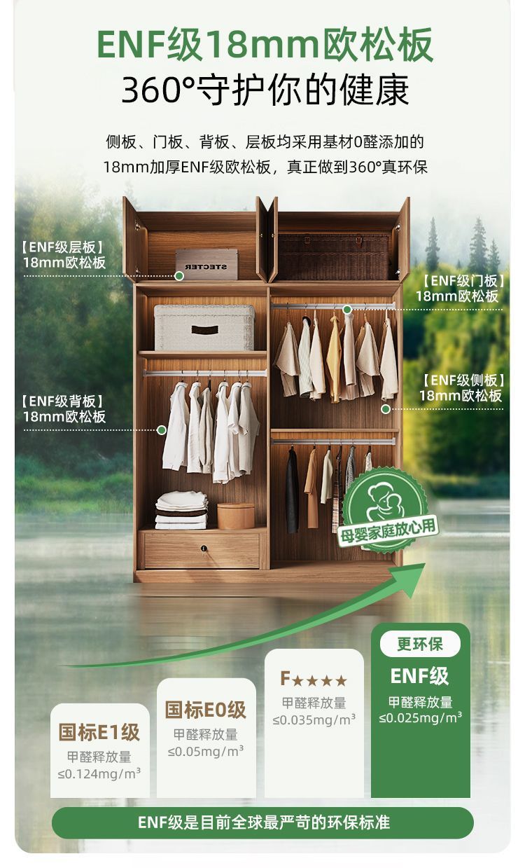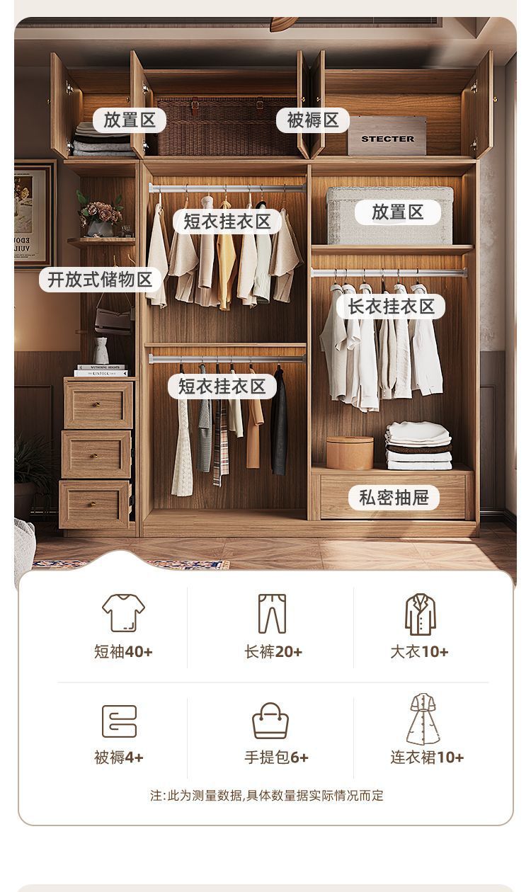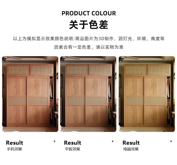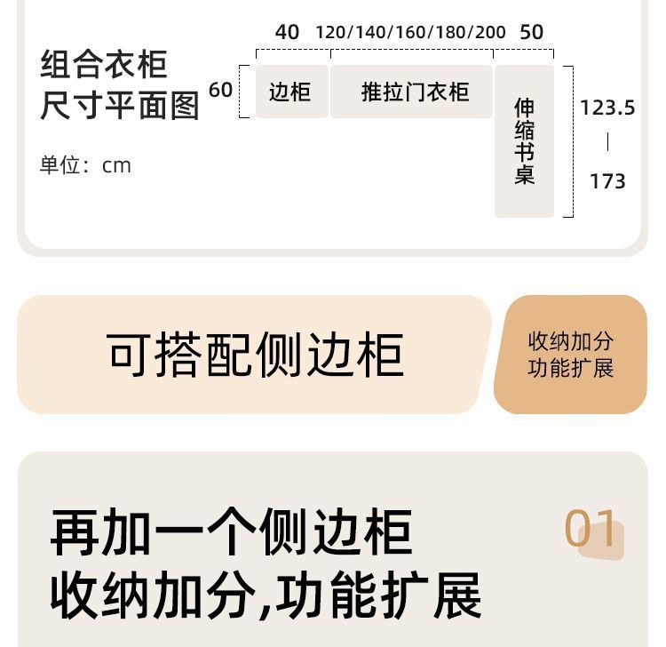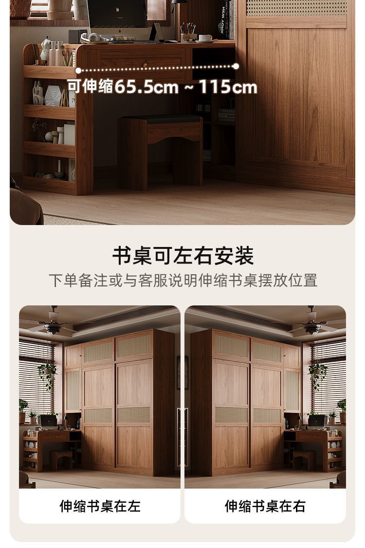 • 1.8m 옷장 + 사이드 캐비닛 + 상단 캐비닛 [방진 등나무 문]