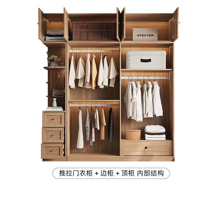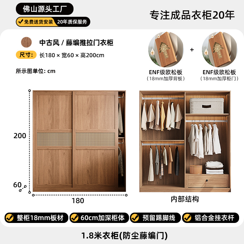 등나무로 짠 중세 스타일 슬라이딩 도어 옷장 작은 가정용 침실 보관 캐비닛 슬라이딩 도어 유럽 소나무 판자 옷장스토어 가기
