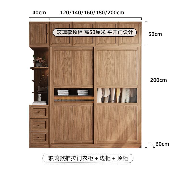 • 2.0m 옷장 + 사이드 캐비닛 + 상단 캐비닛 [방진 등나무 문]
