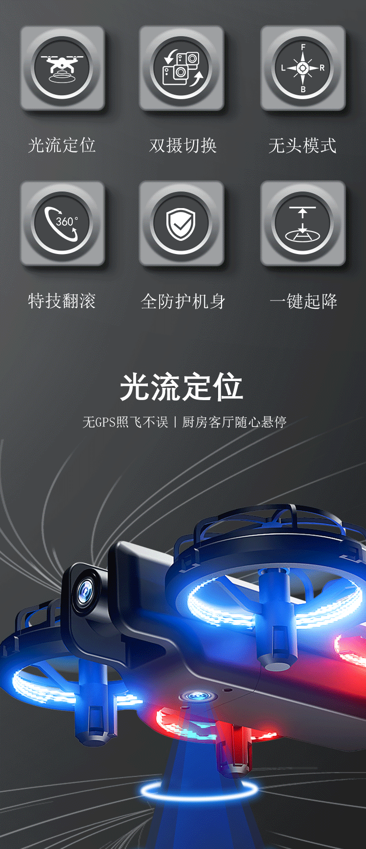 새로운 국경 간 미니 드론 항공 사진 미니 드론 조명 전체 보호 커버 어린이 장난감 원격 제어 항공기스토어 가기