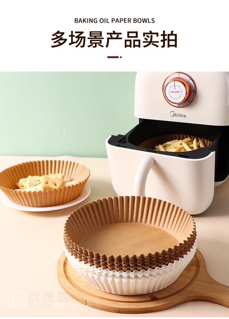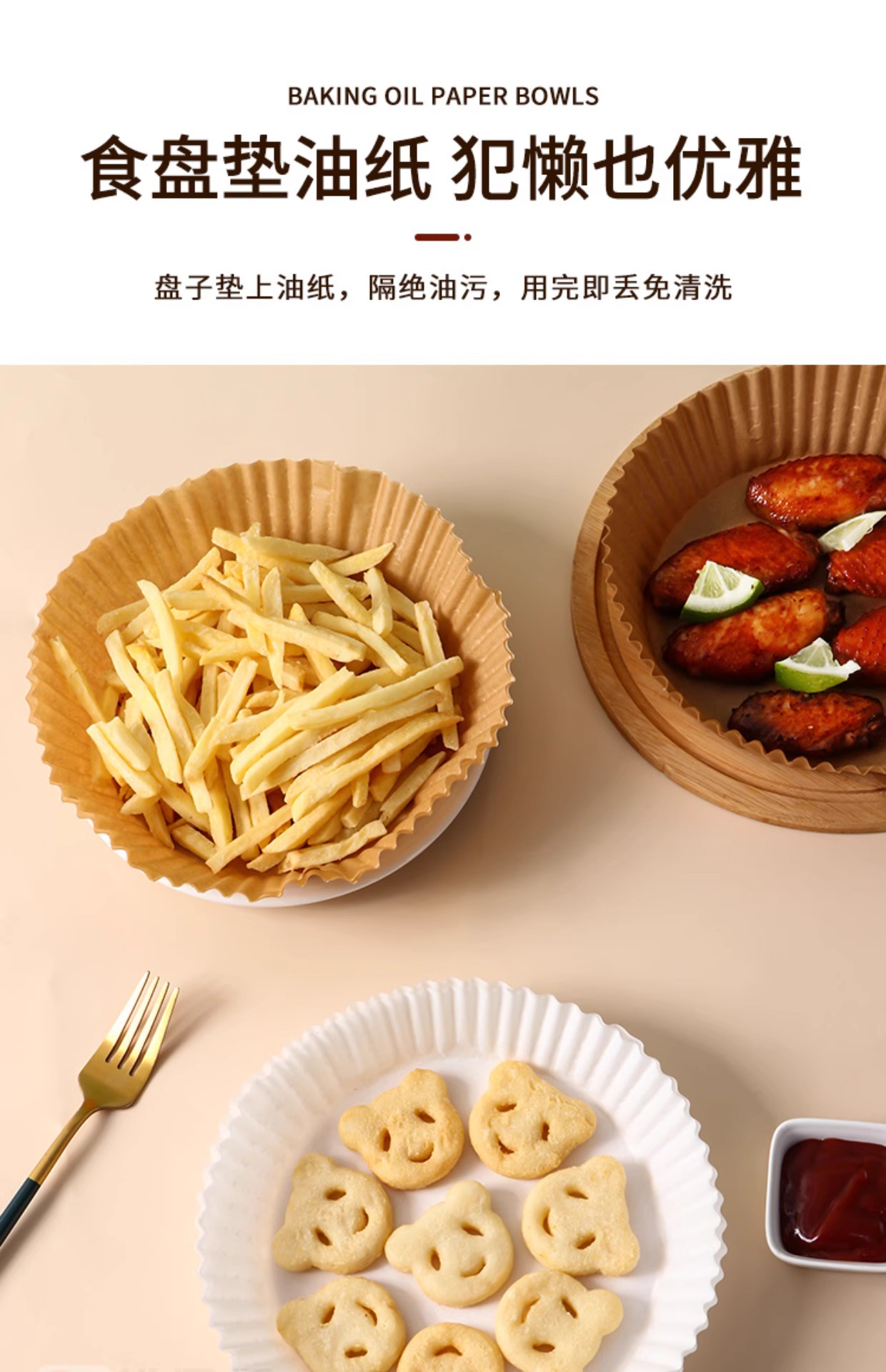 무료 배송 에어 프라이어 종이 접시 베이킹 오일 종이 패드 식품 등급 오일 흡수 종이 케이크 식품 원형 오일 종이