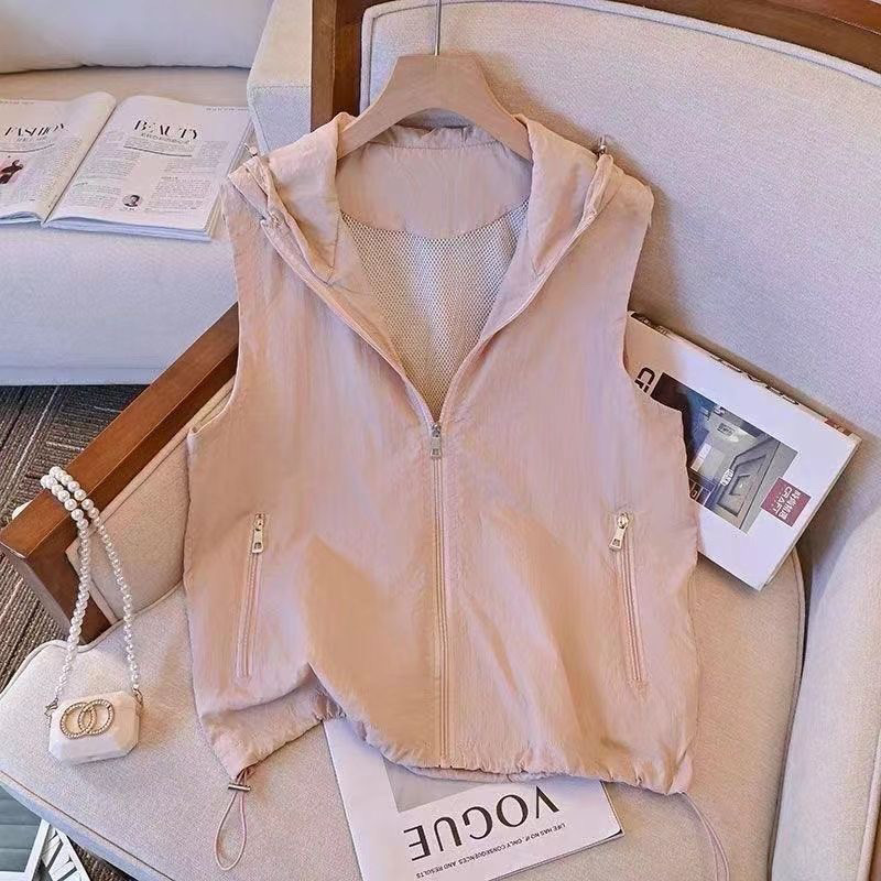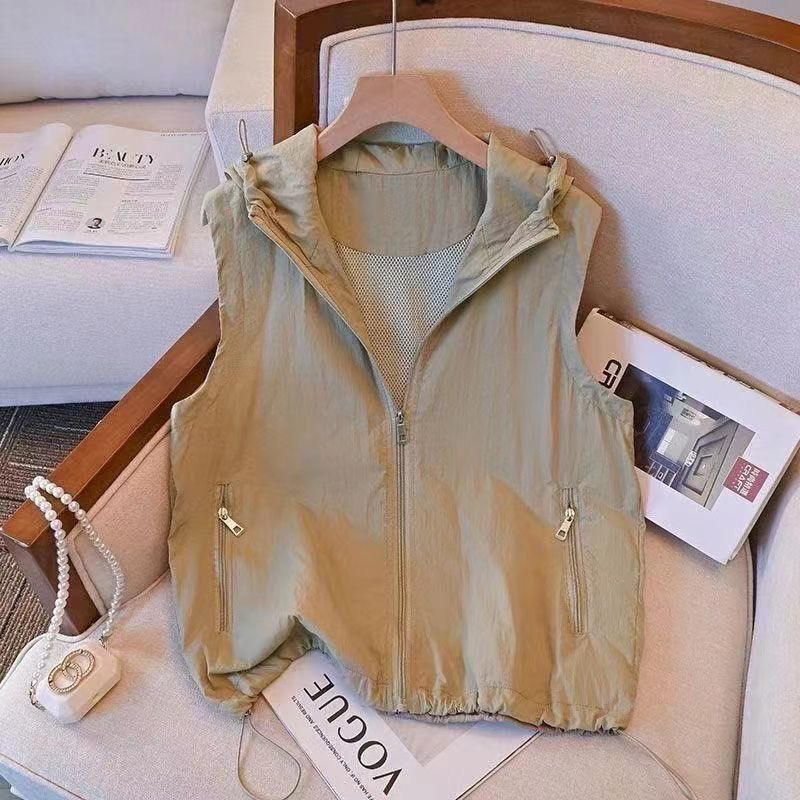 후드 민소매 통기성 재킷 조끼 재킷 여성 2025 여름 새로운 태양 보호 다목적 캐주얼 탑 카디건