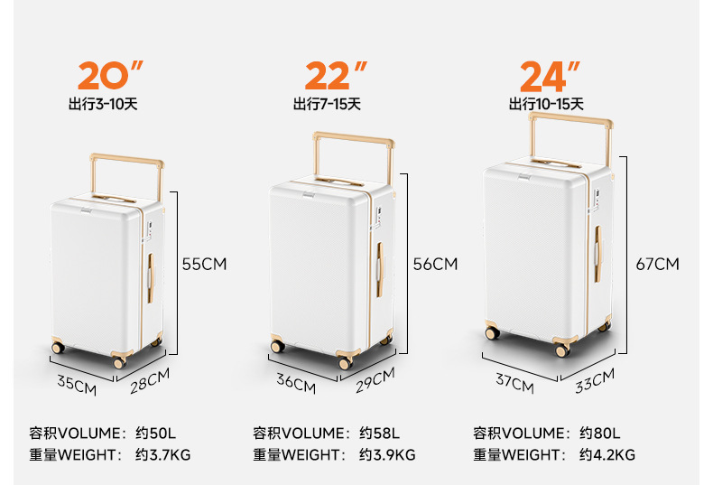 여성용 DTA 가방 2025 새로운 강력하고 내구성이 뛰어난 가방 20inch 소년 대용량 와이드 트롤리 가방 24