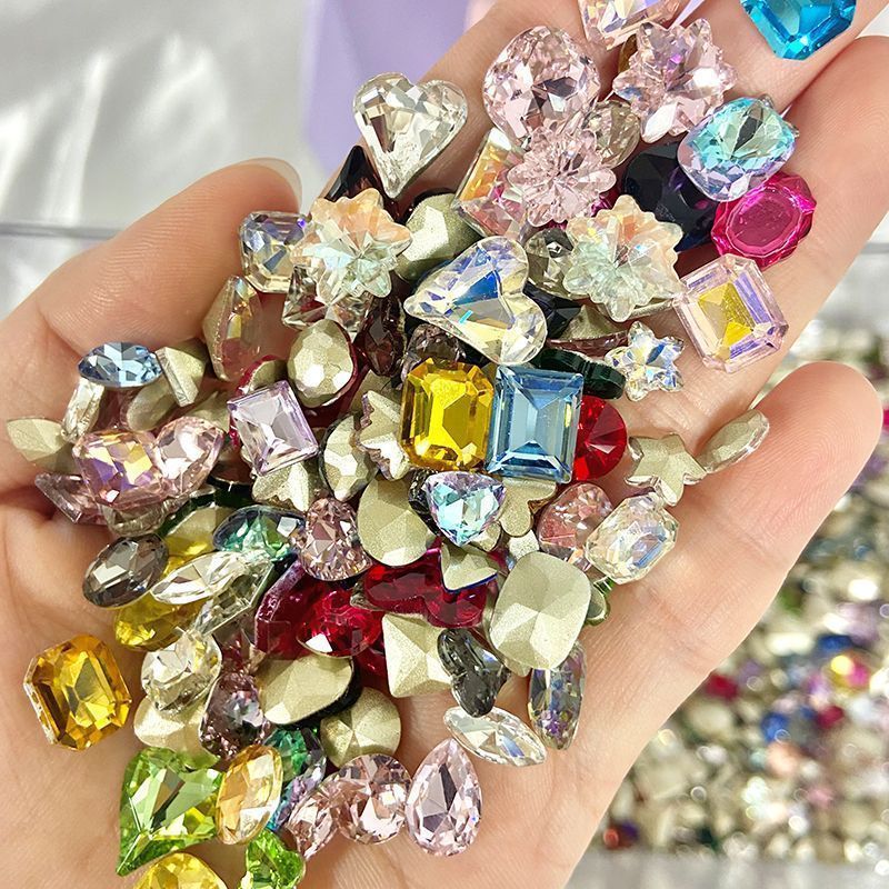 뾰족한 바닥 특수 모양의 K9 유리 다이아몬드 컬러 혼합 다이아몬드 네일 아트 장신구 블라인드 박스 혼합 투명 바닥 DIY 스티커 휴대폰 케이스스토어 가기