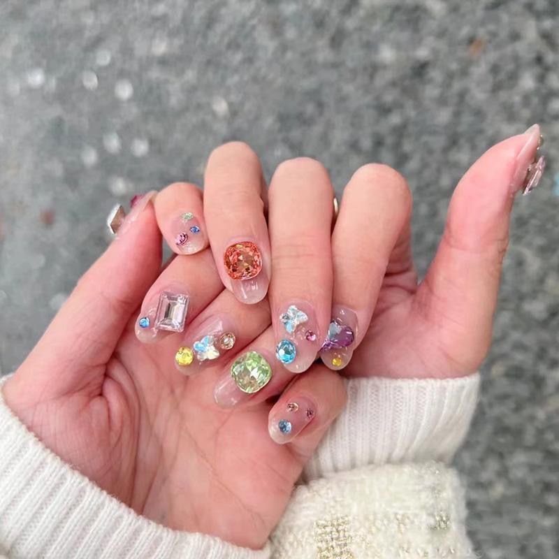 뾰족한 바닥 특수 모양의 K9 유리 다이아몬드 컬러 혼합 다이아몬드 네일 아트 장신구 블라인드 박스 혼합 투명 바닥 DIY 스티커 휴대폰 케이스