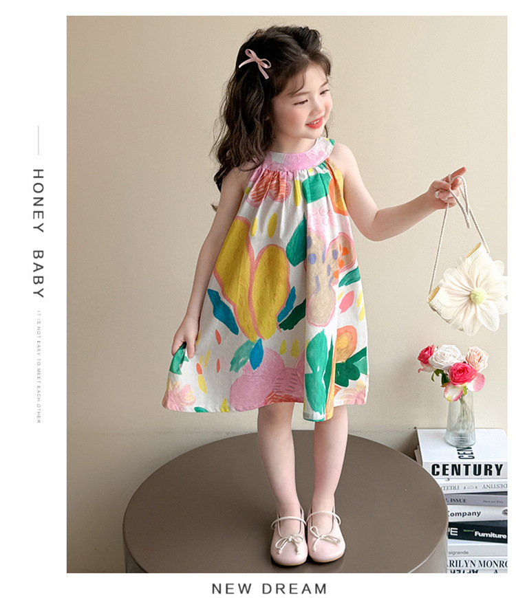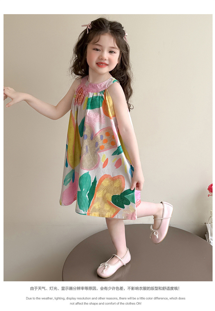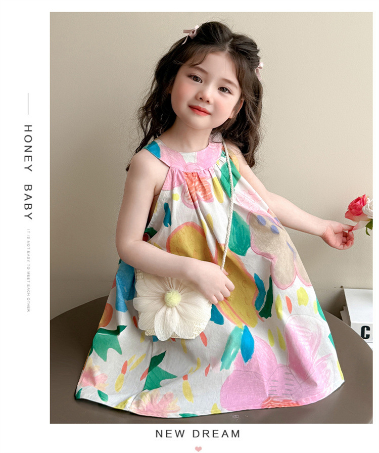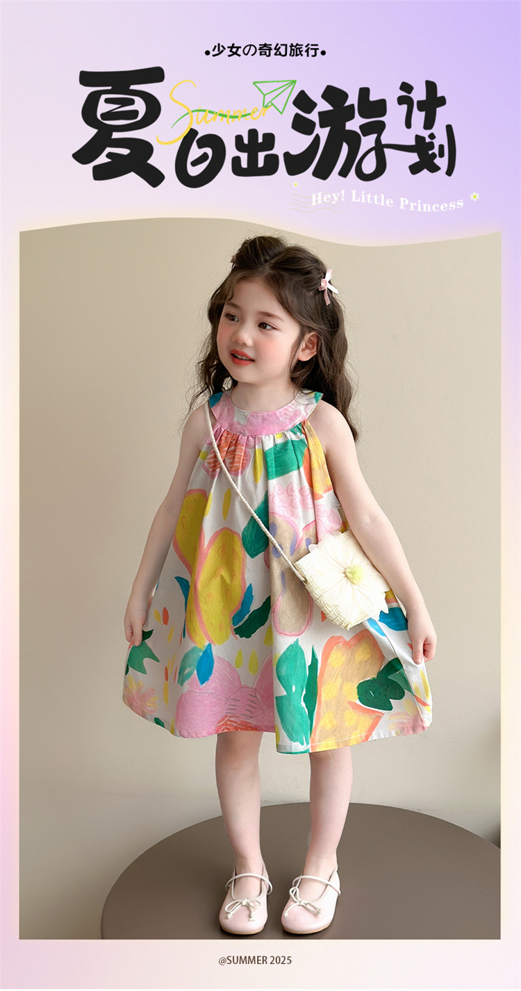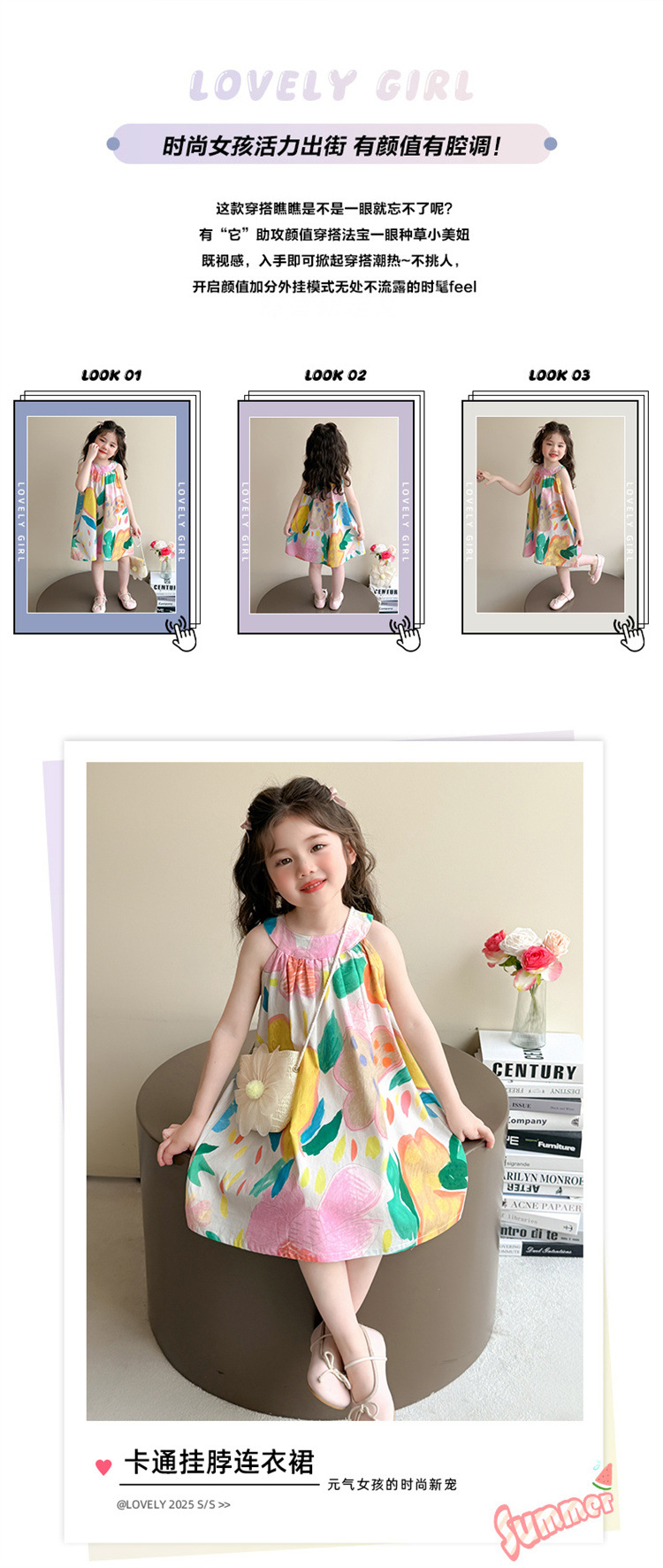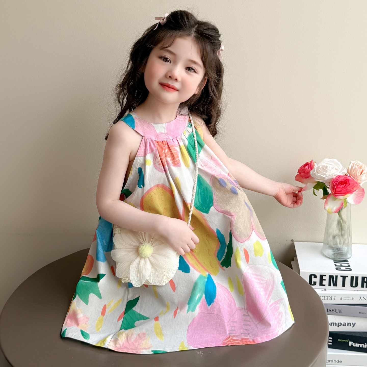 여자 선인장 홀터넥 드레스 2025 여름 새로운 패션 어린 소녀 스타일 공주 드레스 중소 어린이를위한스토어 가기