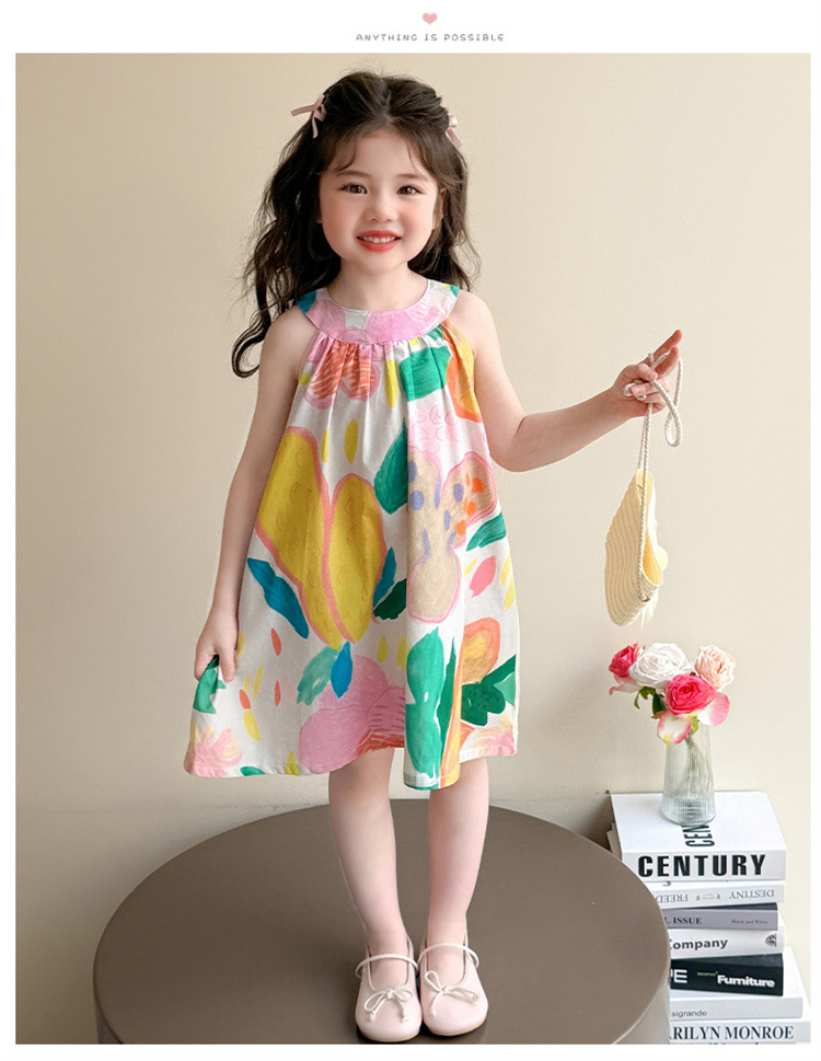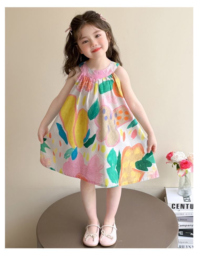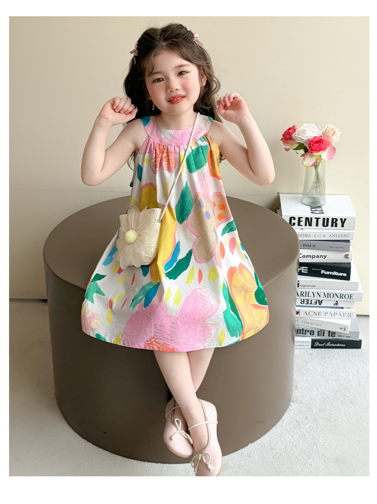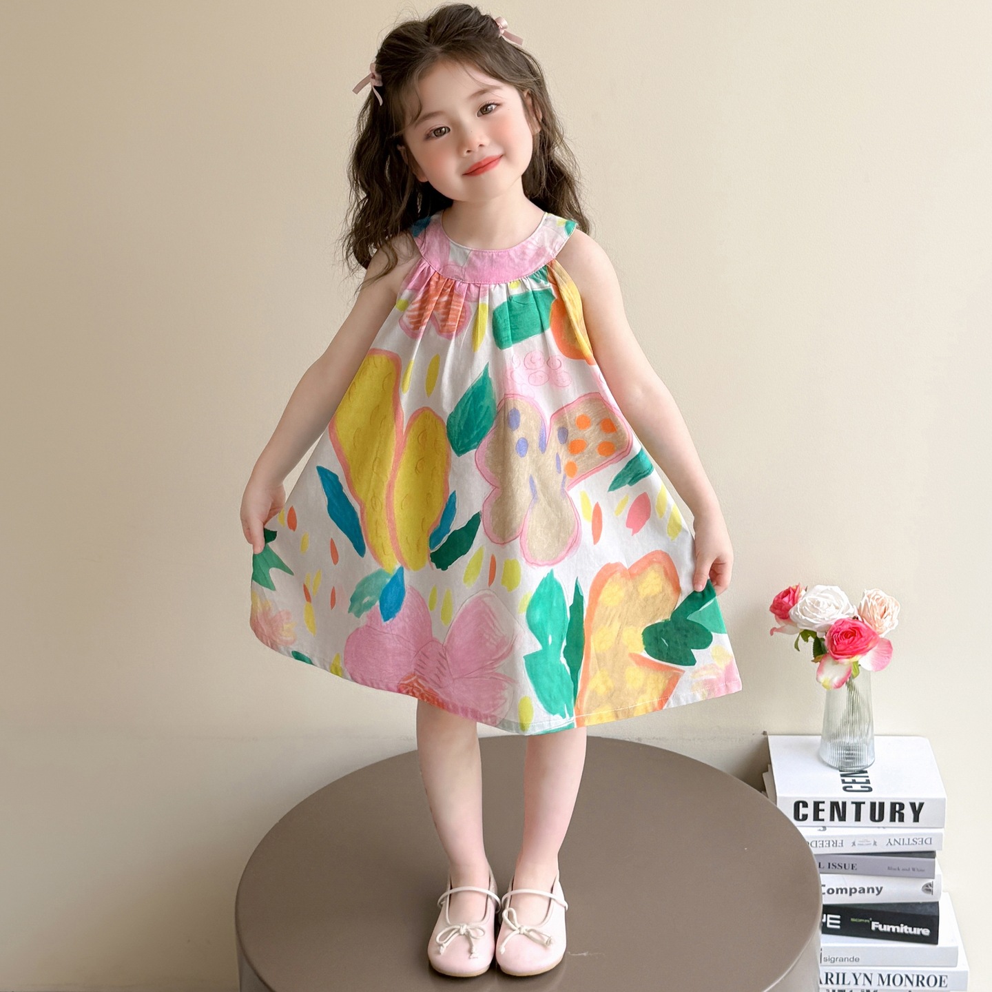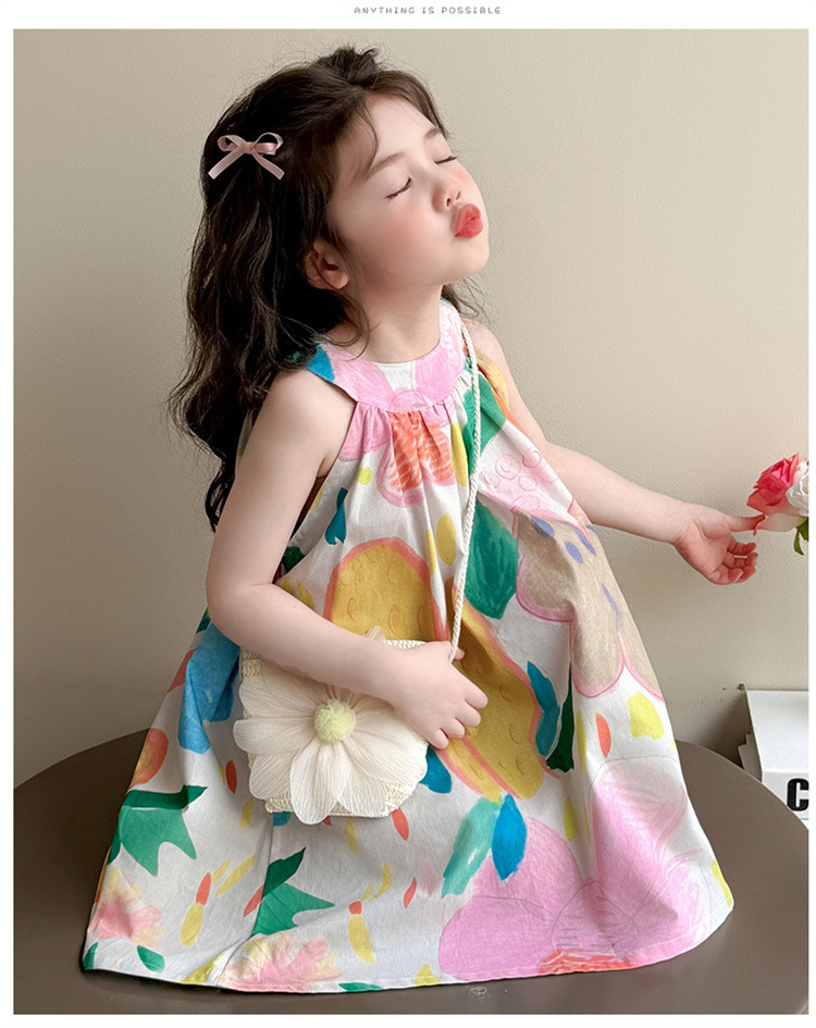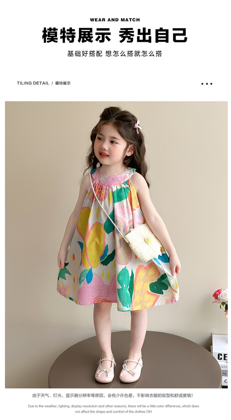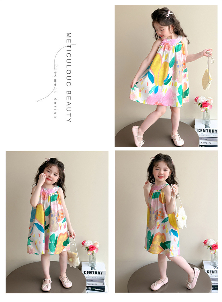 여자 선인장 홀터넥 드레스 2025 여름 새로운 패션 어린 소녀 스타일 공주 드레스 중소 어린이를위한스토어 가기
