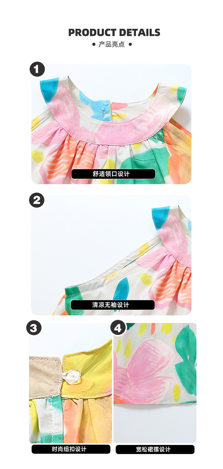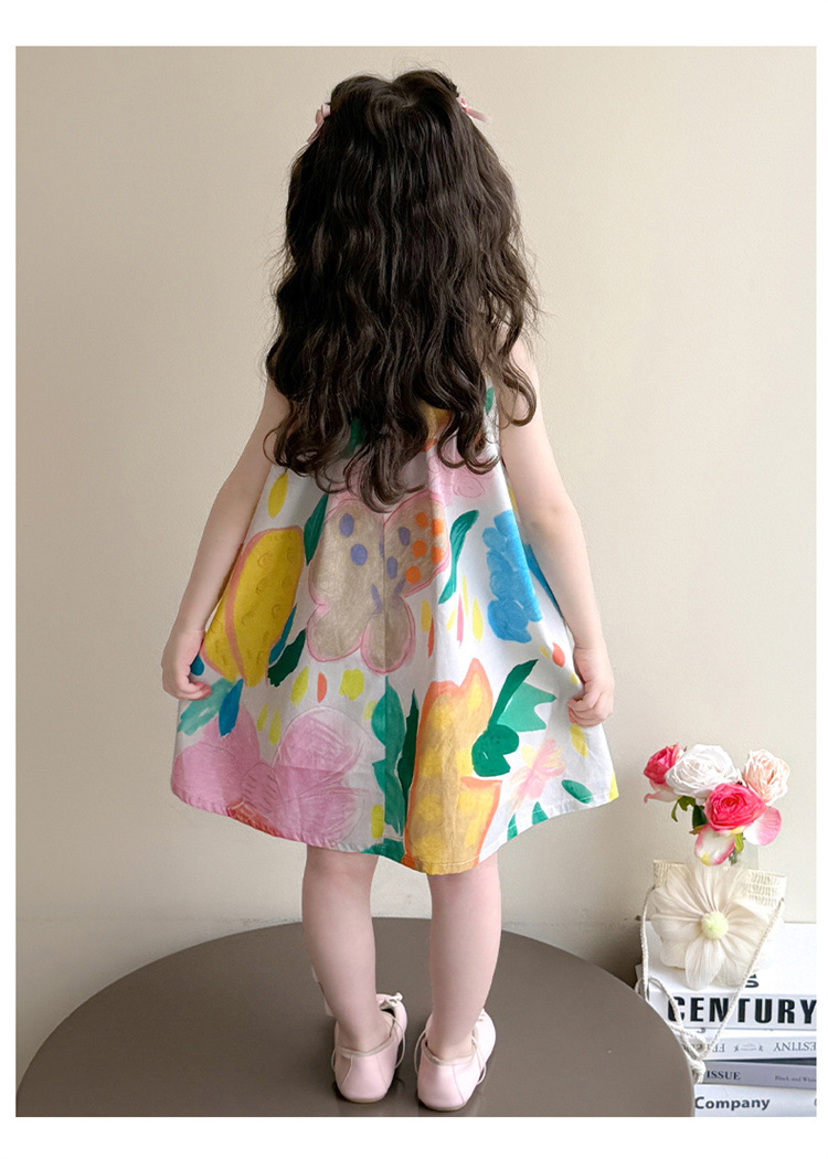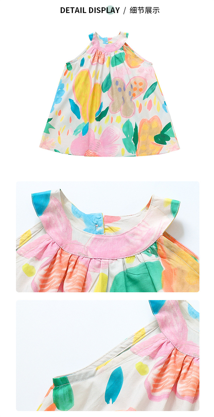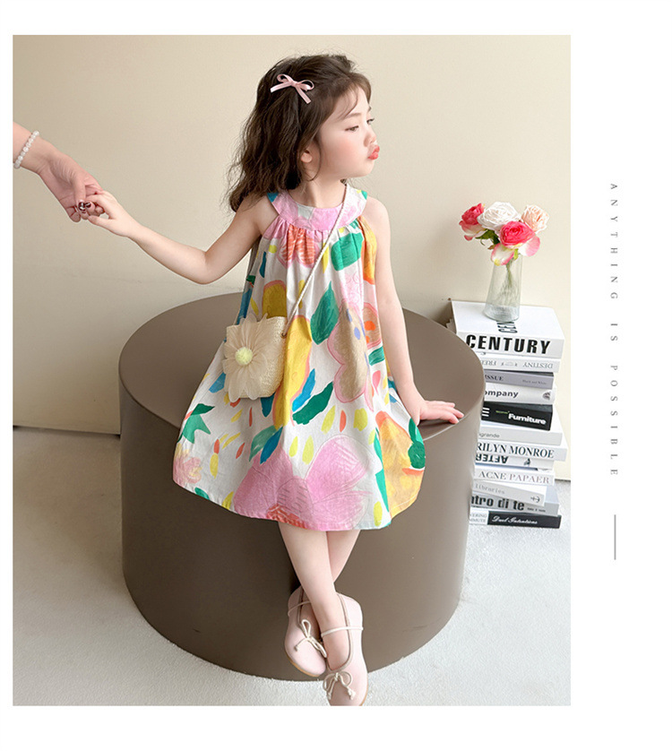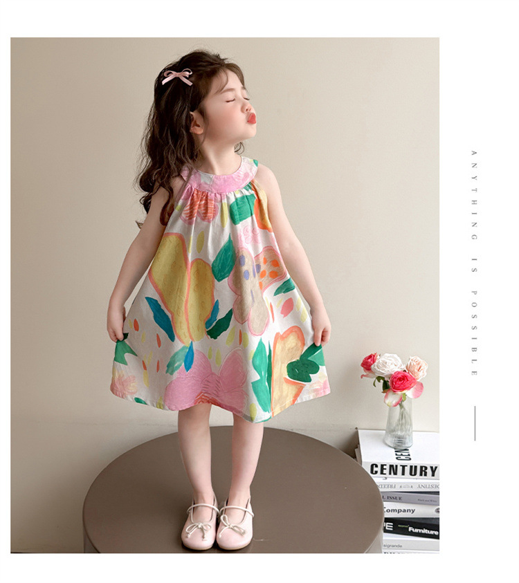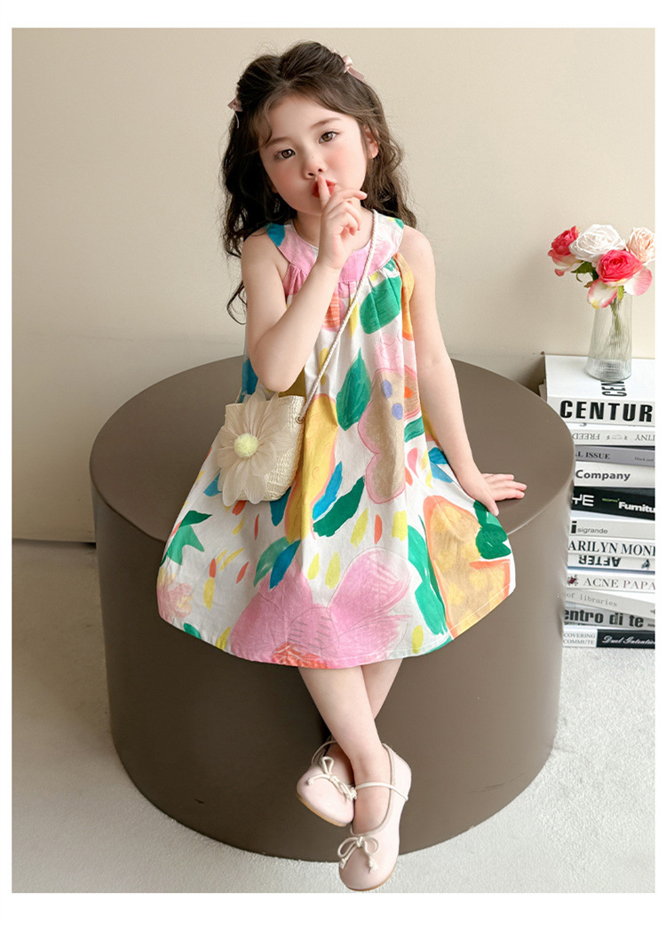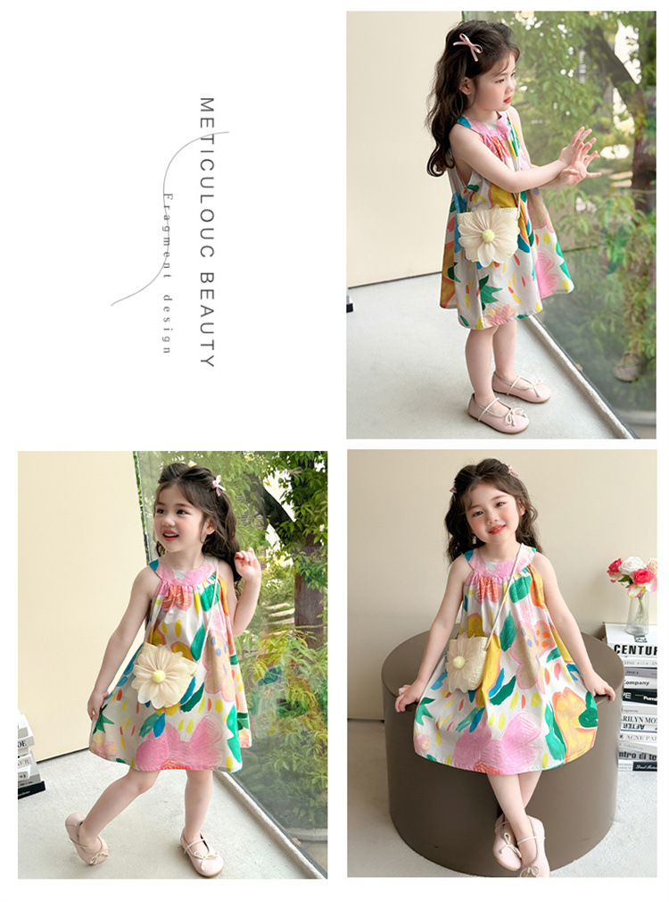 여자 선인장 홀터넥 드레스 2025 여름 새로운 패션 어린 소녀 스타일 공주 드레스 중소 어린이를위한스토어 가기
