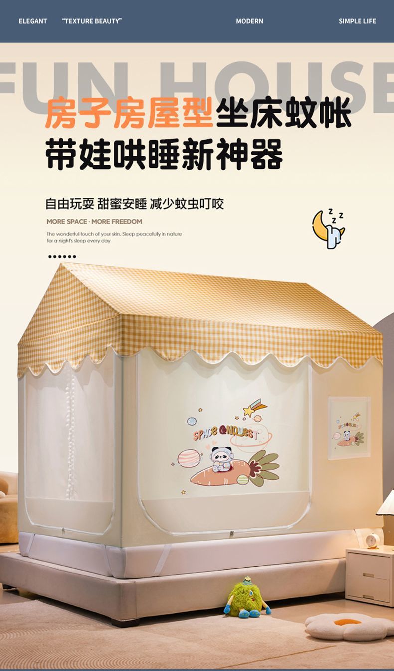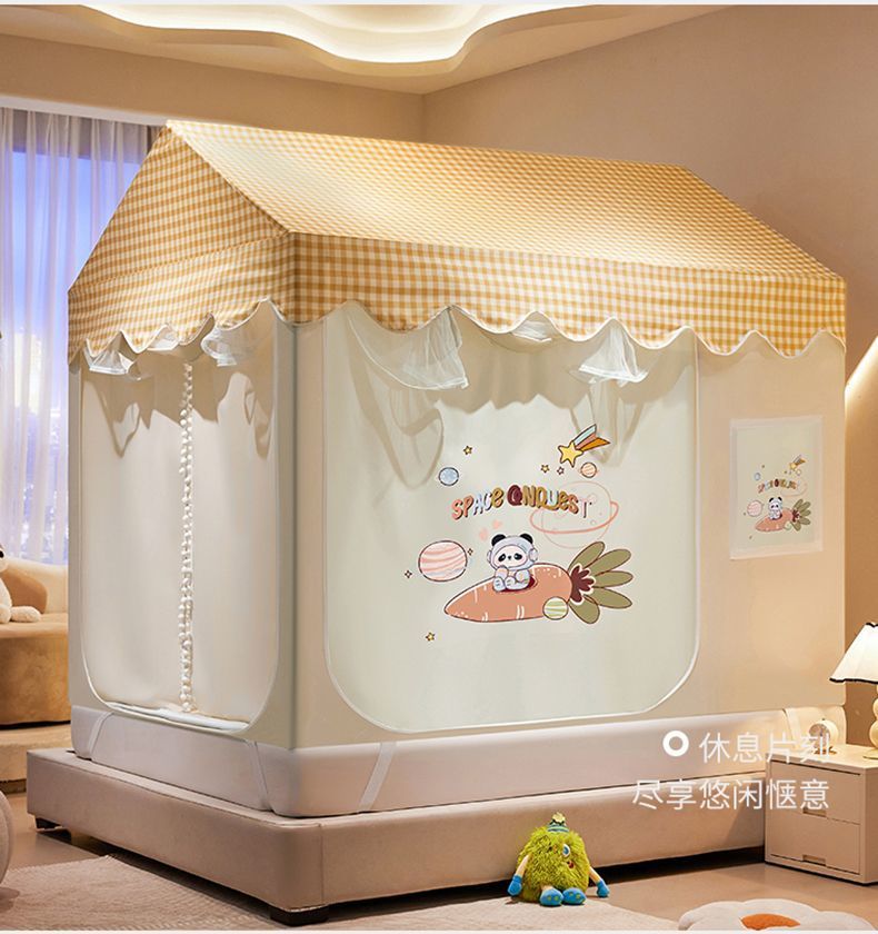 새로운 공주 스타일 어린이 작은 집 모기장 빛 차단 침대 커튼 방진 3 도어 침실 낙하 방지 성 모기장
