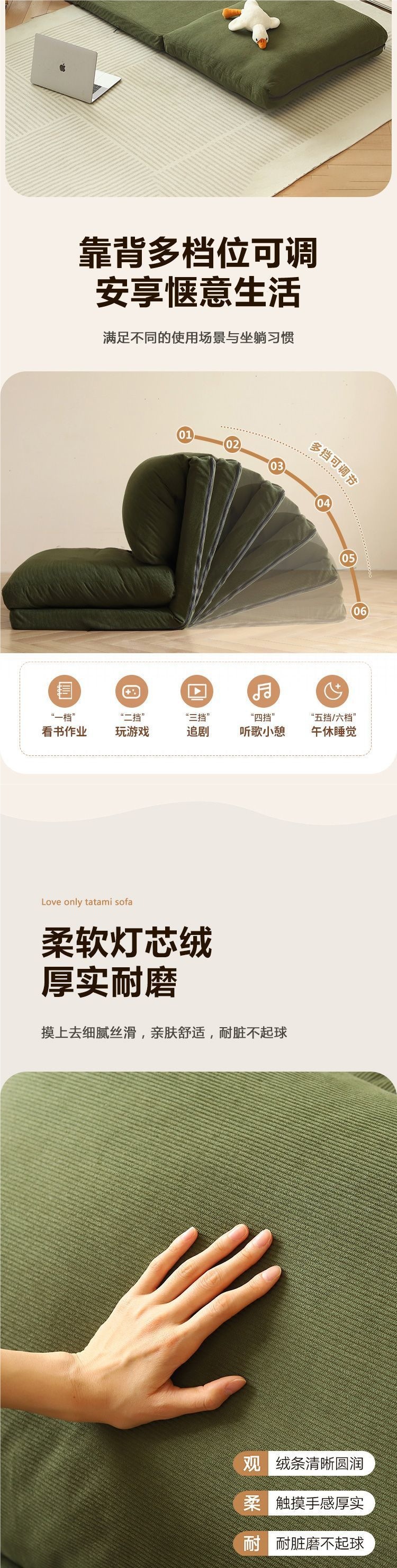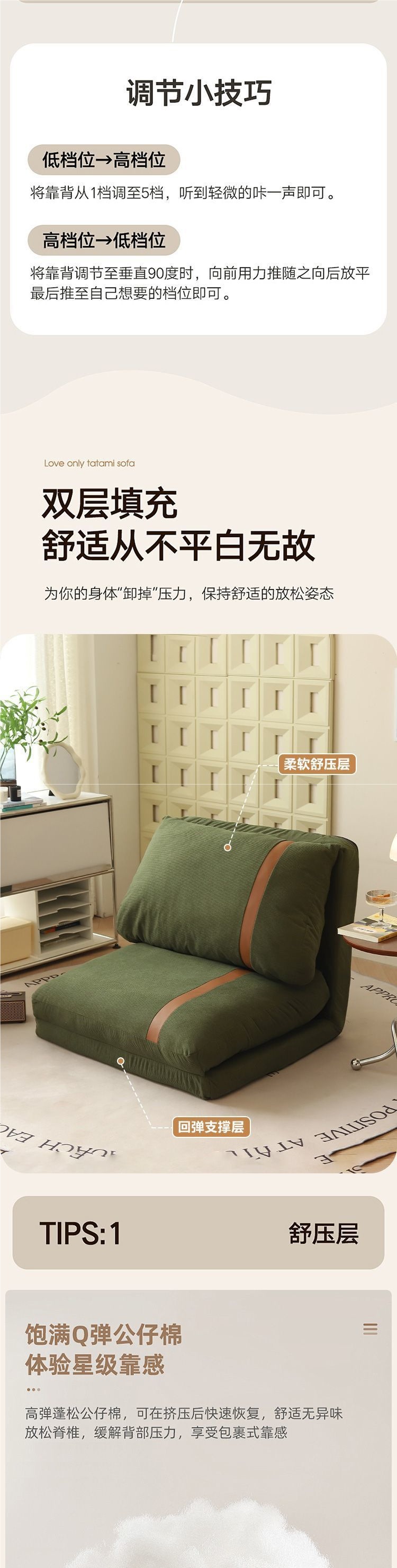 리클라이닝 및 수면이 가능한 게으른 소파, 작은 아파트 발코니, 거실, 레저 크림 스타일 홈 침실 접이식 소파 베드