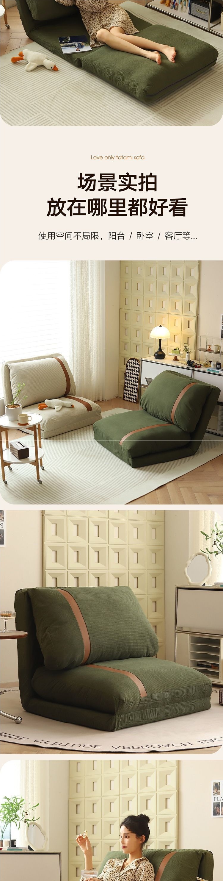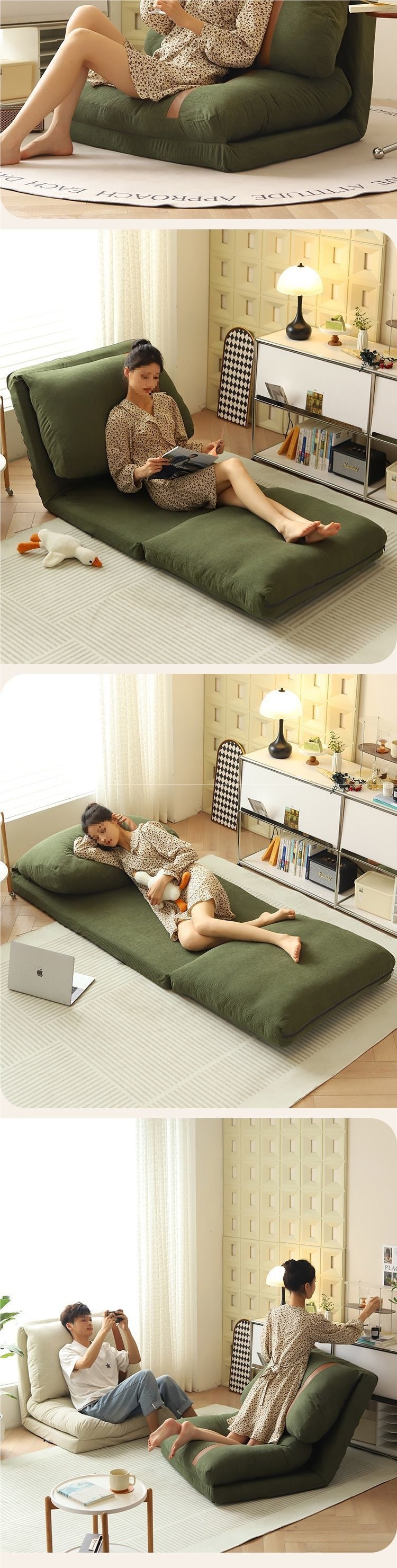 리클라이닝 및 수면이 가능한 게으른 소파, 작은 아파트 발코니, 거실, 레저 크림 스타일 홈 침실 접이식 소파 베드스토어 가기