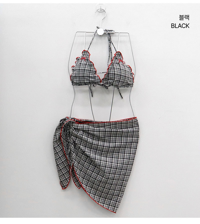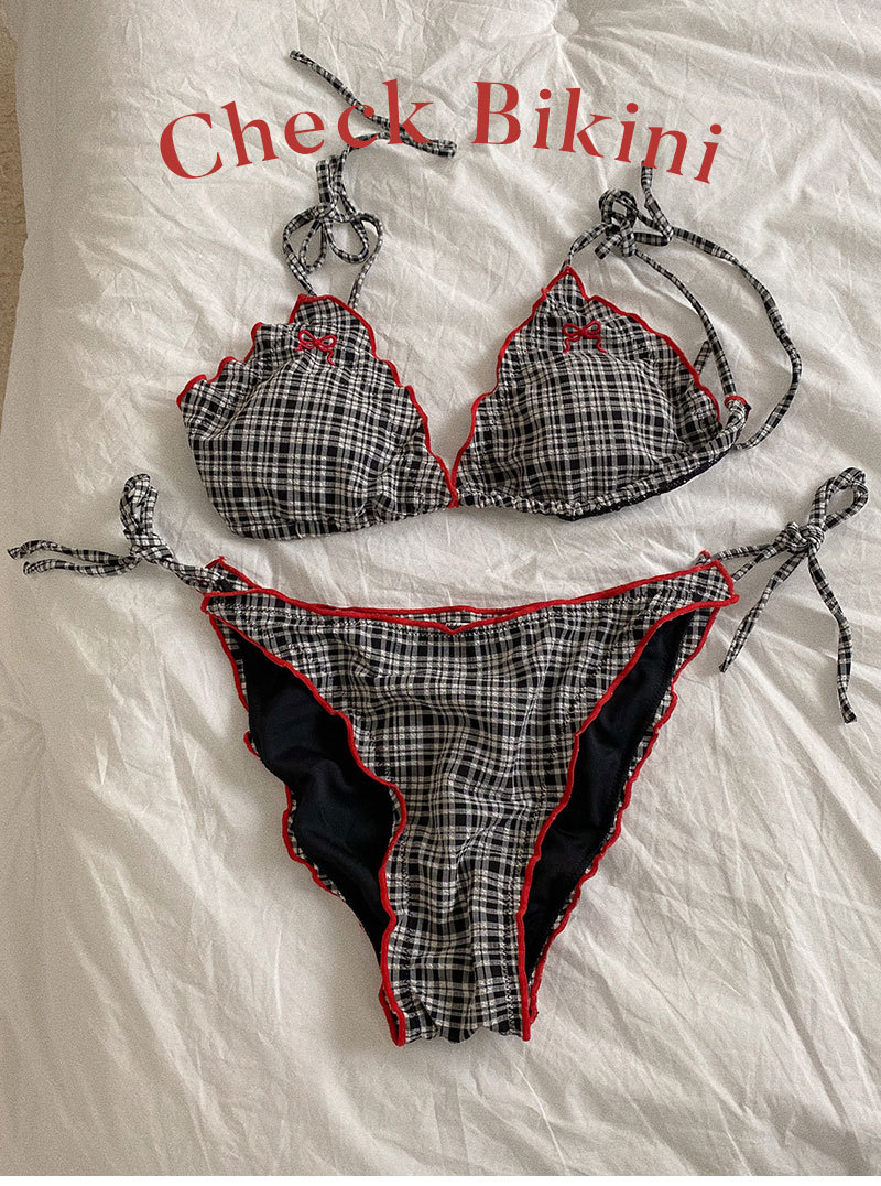 도파민 2025 새로운 격자 무늬 섹시한 순수한 욕망 스타일 비키니 3 피스 수영복 소녀 휴가 온천 수영복스토어 가기