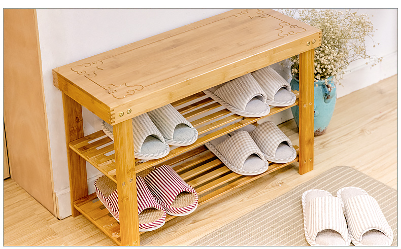 W9YX 간단한 집 입구 현관 다층 신발 교환 의자 공간 절약형 대나무 신발 교환 의자 신발 캐비닛 단단한 나무스토어 가기