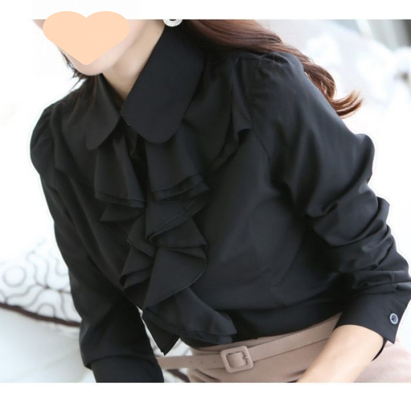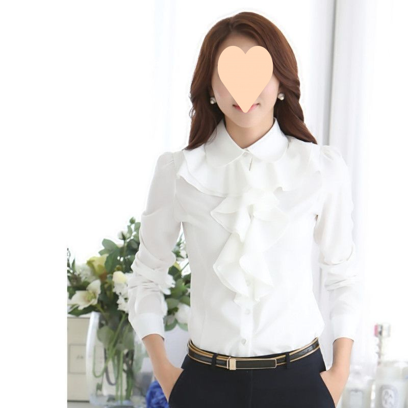 한국식 통근 라펠 러플 레이스 화이트 셔츠 여성 긴팔 전문 슬림핏 쉬폰 셔츠 베이스 탑스토어 가기