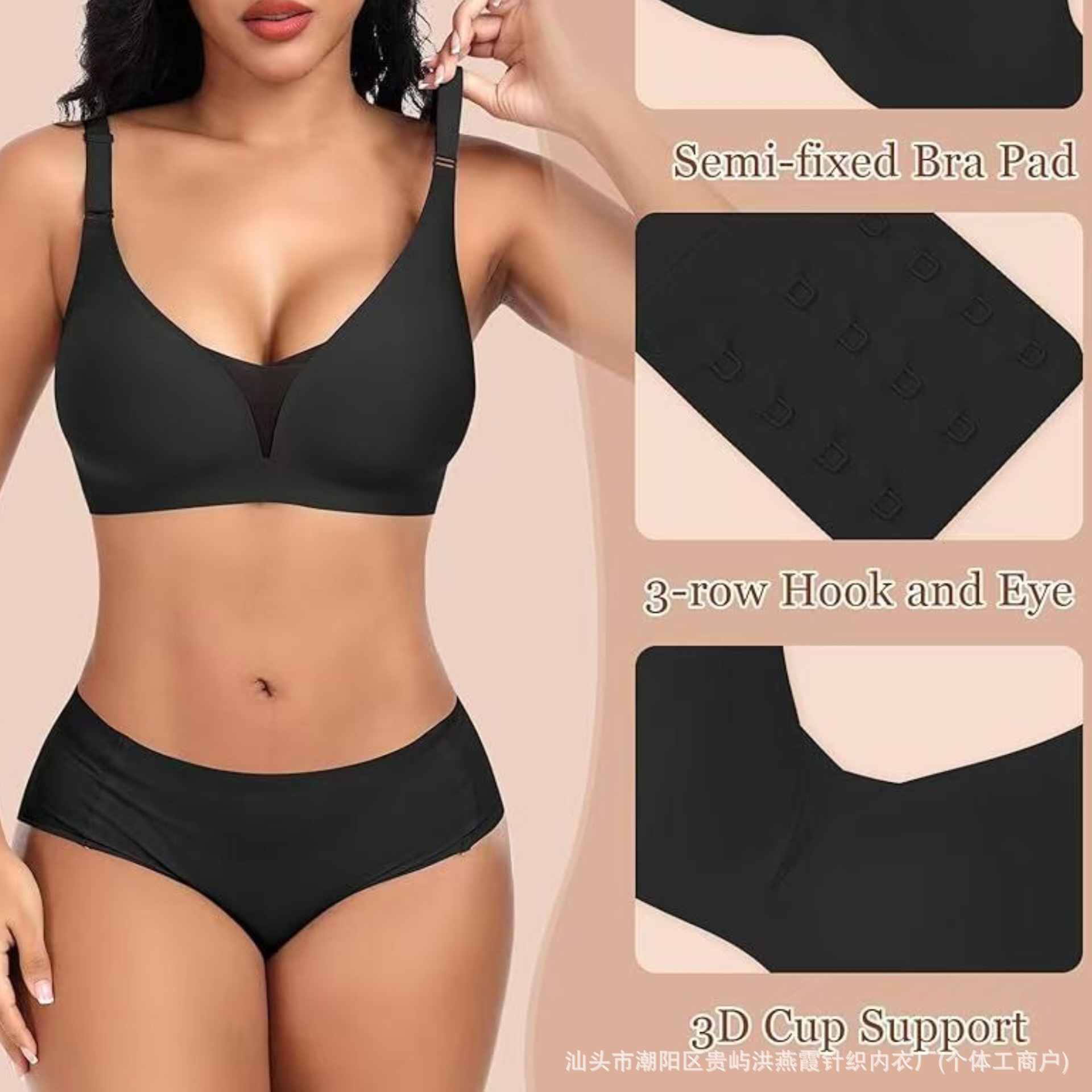 유럽과 미국의 대형 사이즈 여성용 심리스 속옷, 작은 가슴 푸쉬업, 얇은 딥 브이 원피스 속옷, 와이어 없음, 뒷 버클