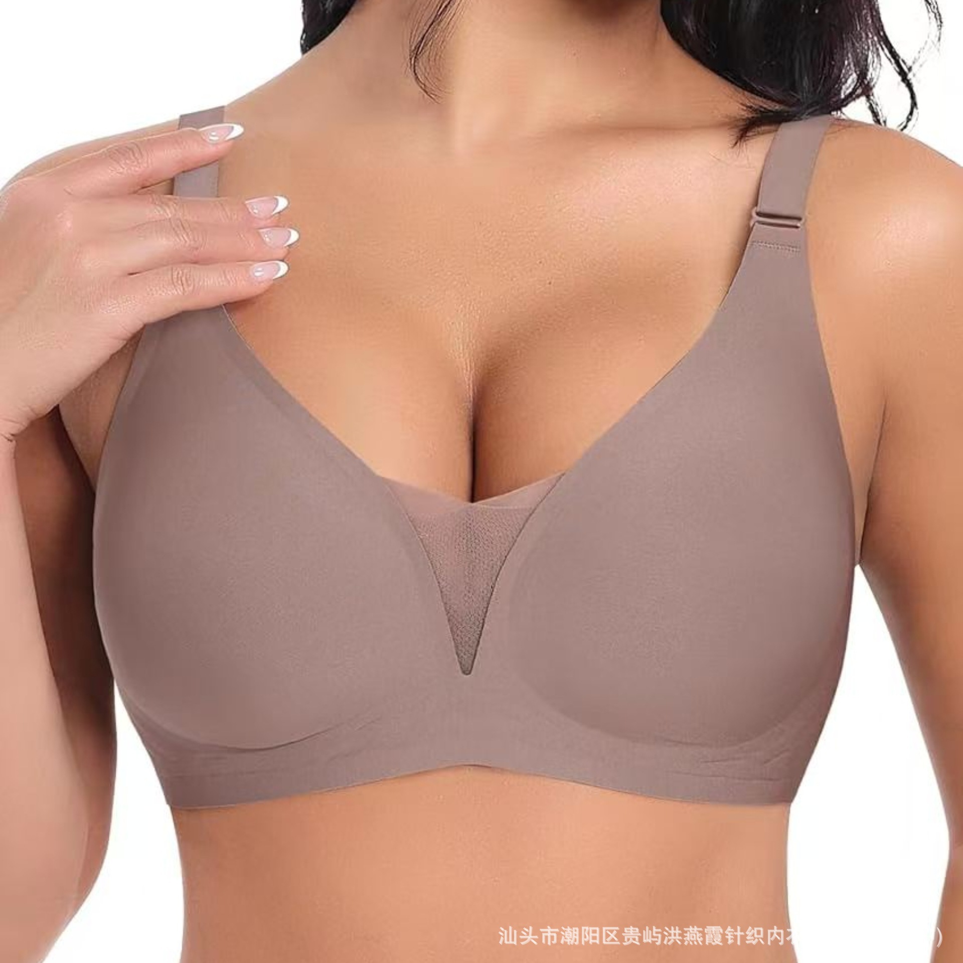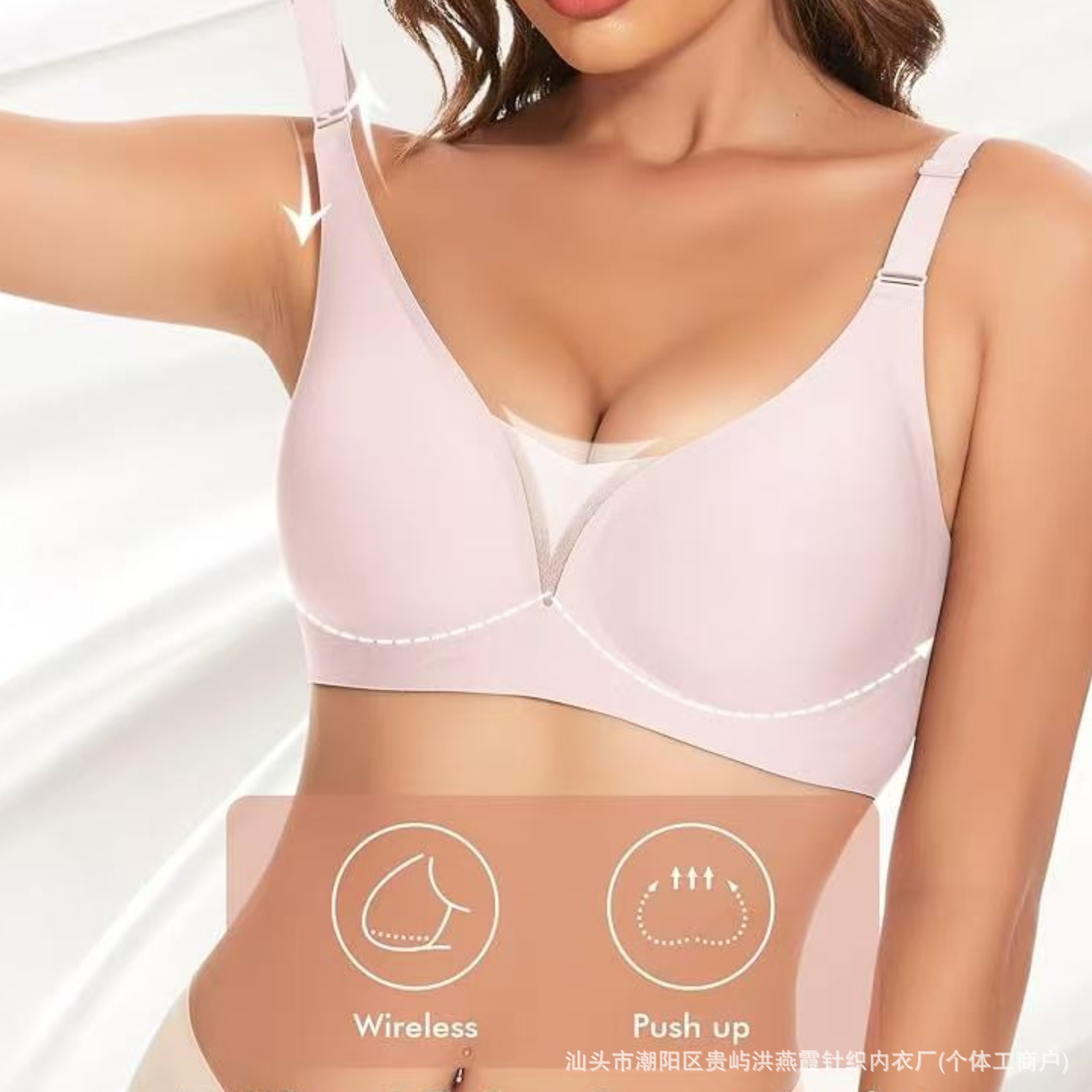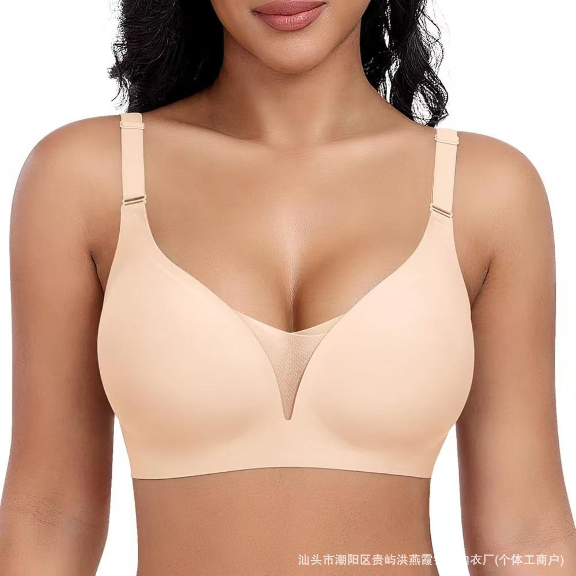 유럽과 미국의 대형 사이즈 여성용 심리스 속옷, 작은 가슴 푸쉬업, 얇은 딥 브이 원피스 속옷, 와이어 없음, 뒷 버클스토어 가기