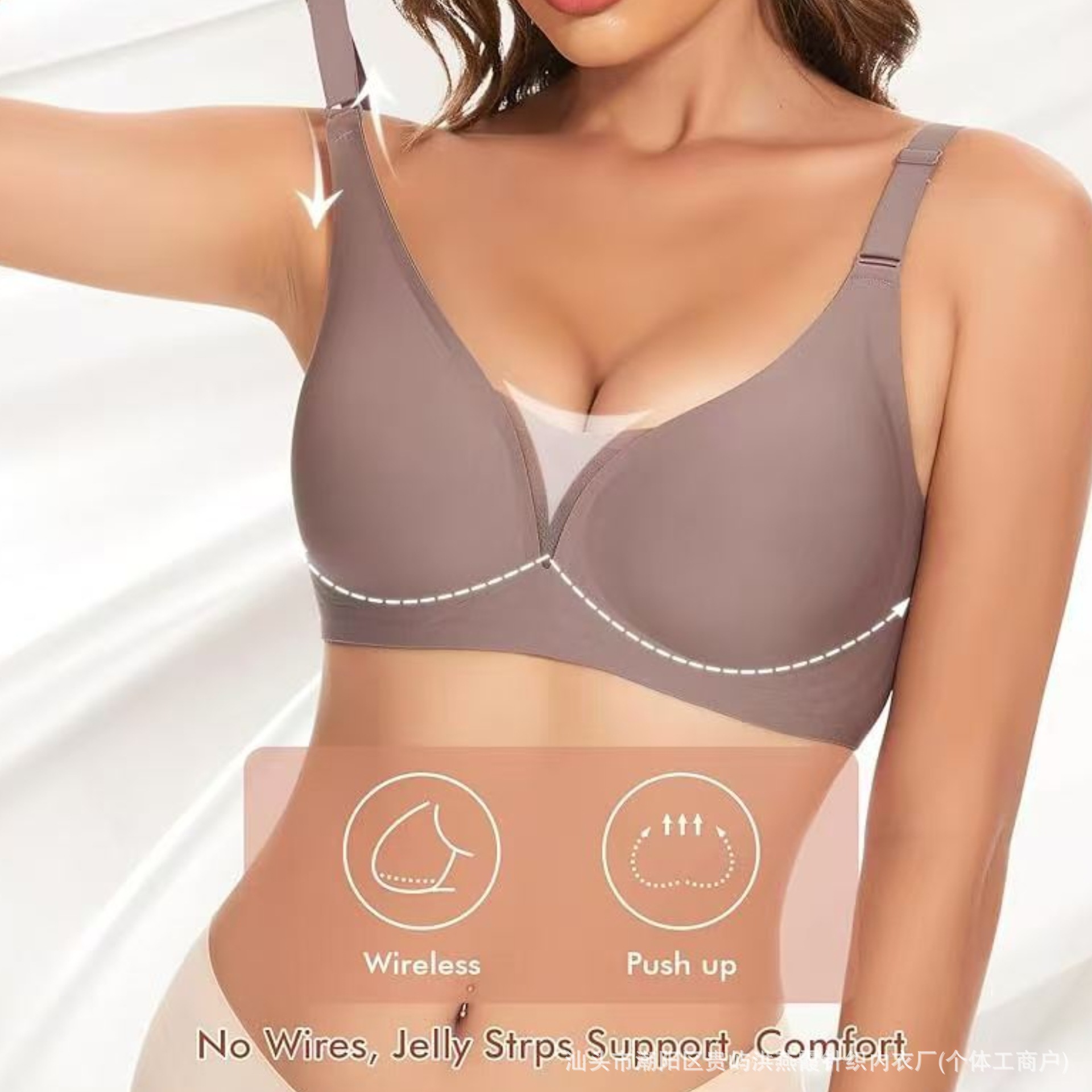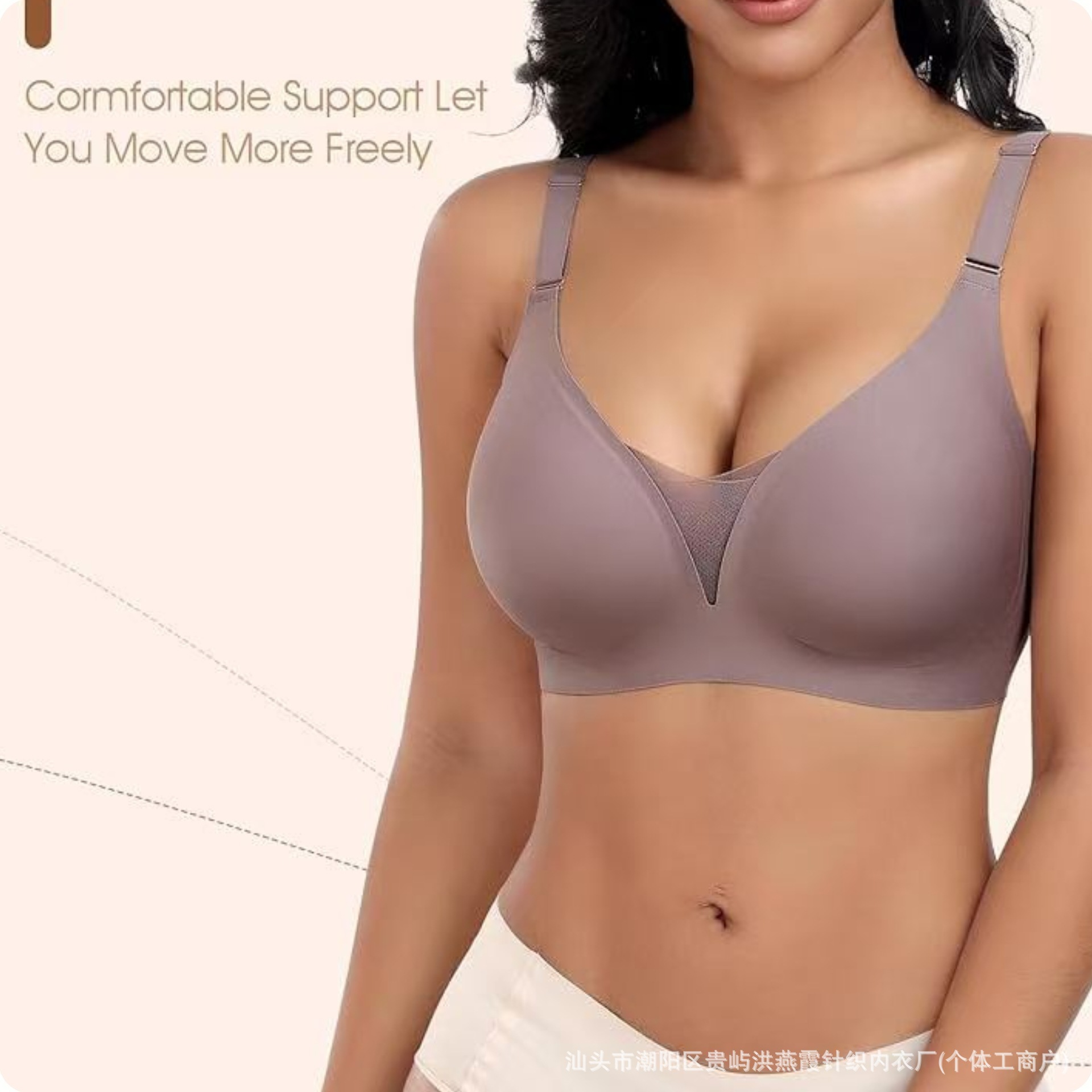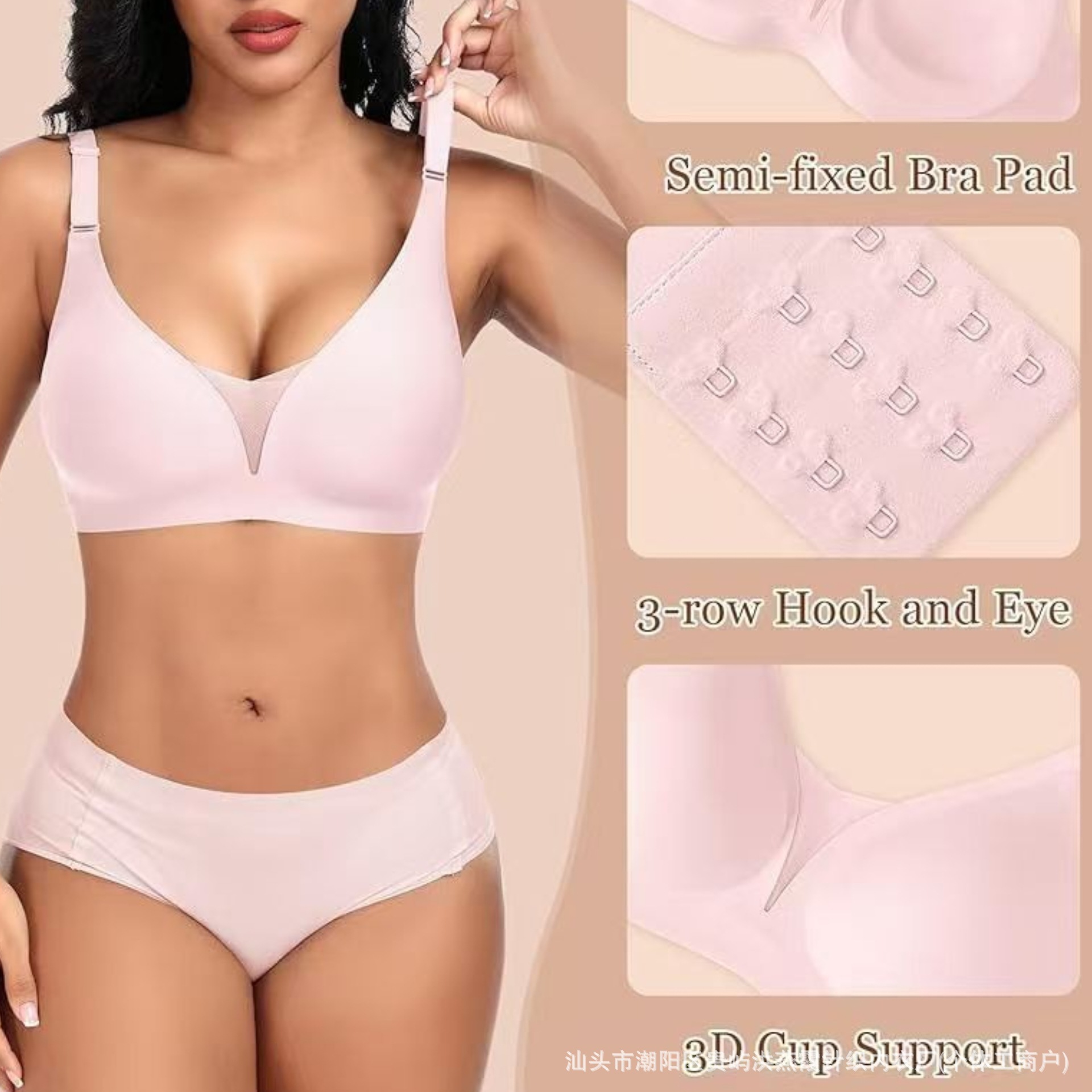유럽과 미국의 대형 사이즈 여성용 심리스 속옷, 작은 가슴 푸쉬업, 얇은 딥 브이 원피스 속옷, 와이어 없음, 뒷 버클스토어 가기