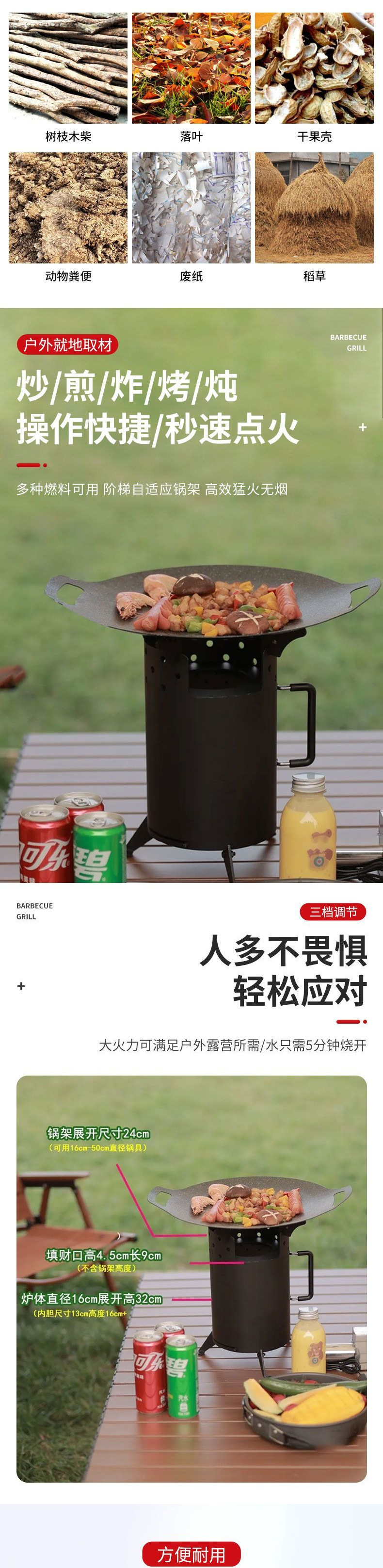 야외 강력한 화덕 장작 난로 자동차 캠핑 피크닉 요리 에너지 절약형 인터넷 연예인 무연 휴대용 강력한 화덕 피크닉스토어 가기