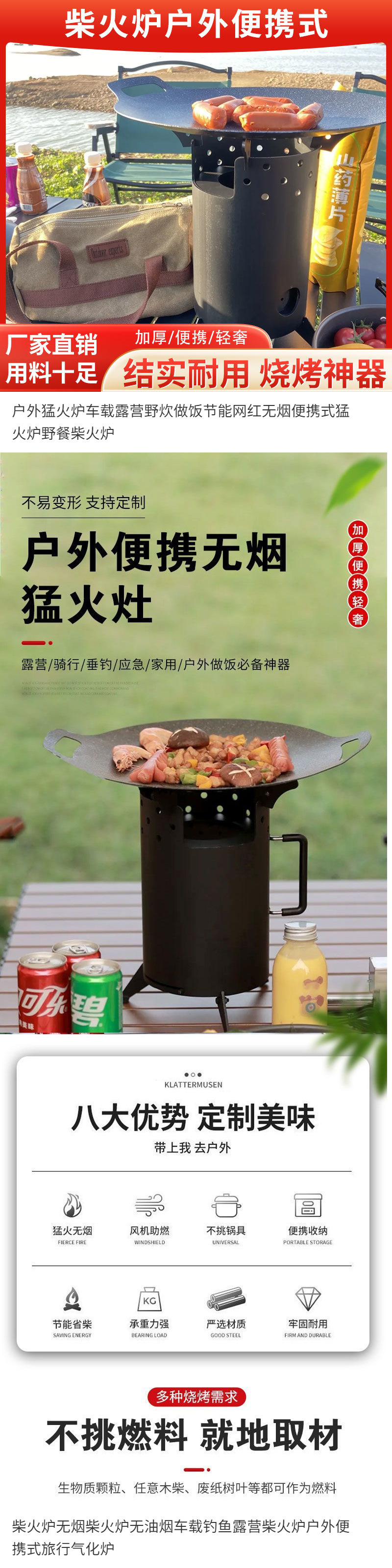 • 업그레이드된 두꺼운 무연 장작 난로