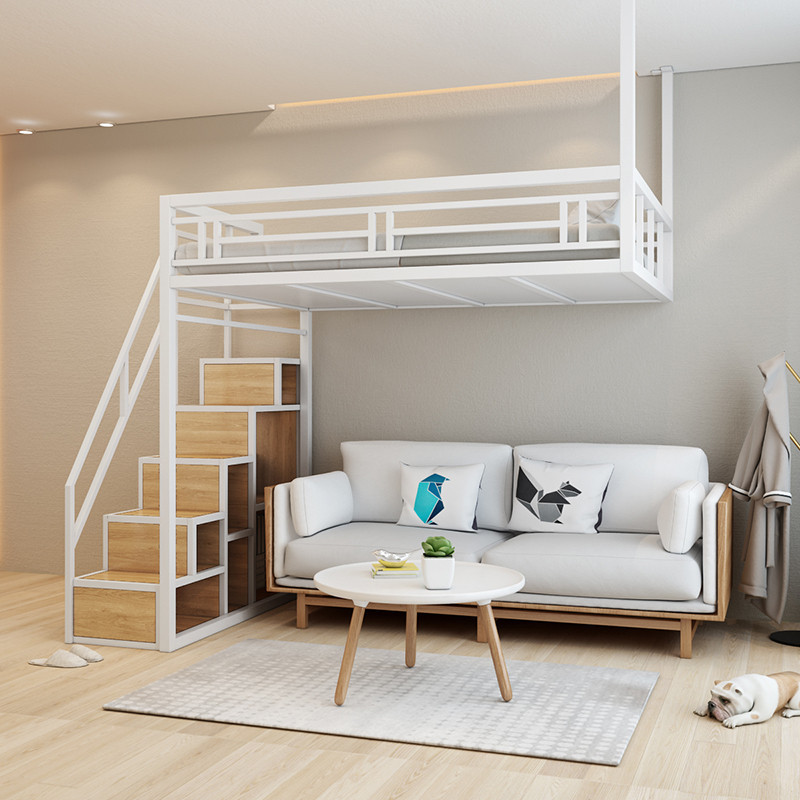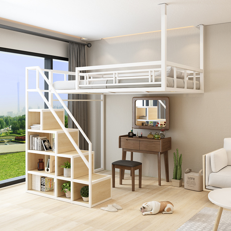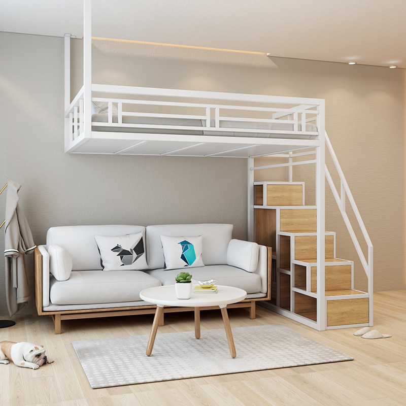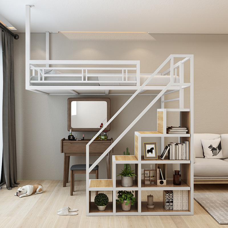 공간 절약형 소형 다기능 아파트 침대 철제 싱글 및 더블 해먹 로프트 침대 복층 2층 침대 로프트 침대스토어 가기