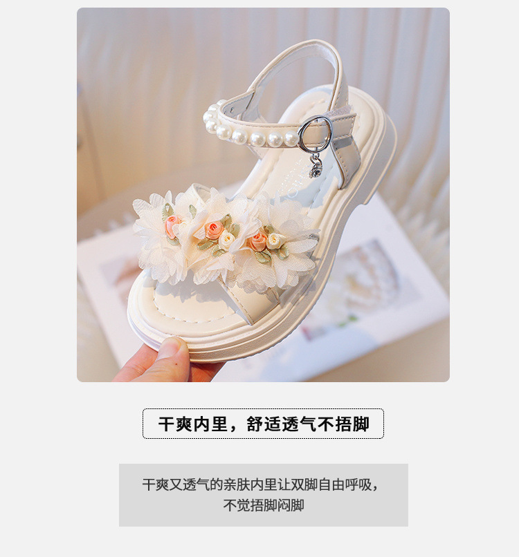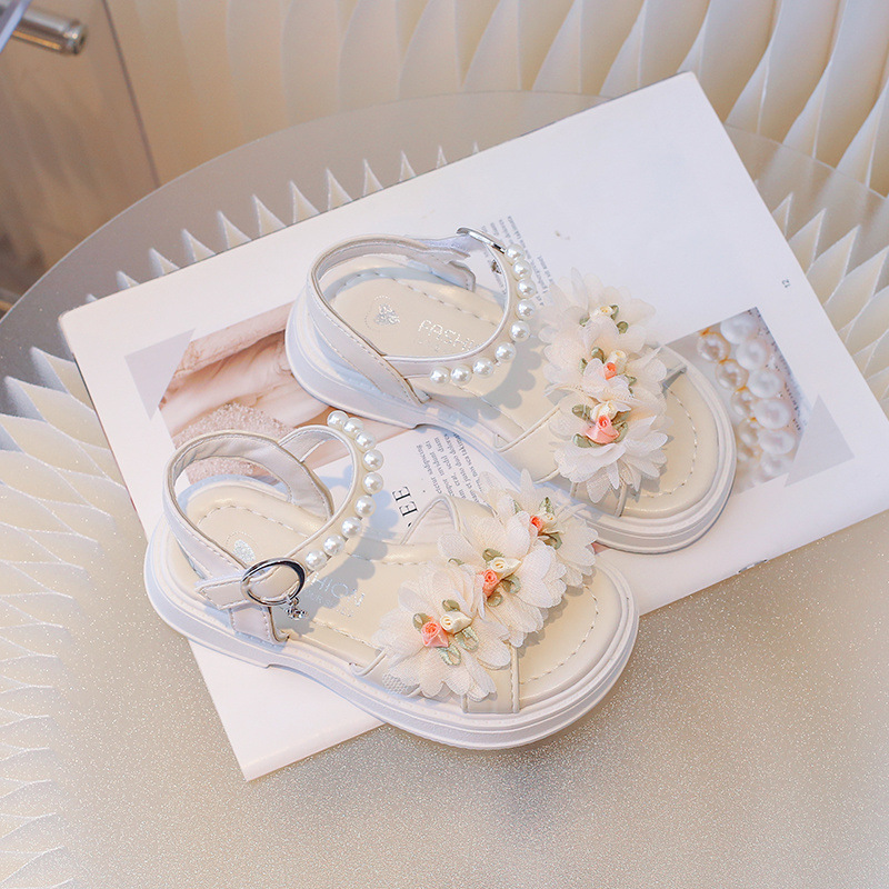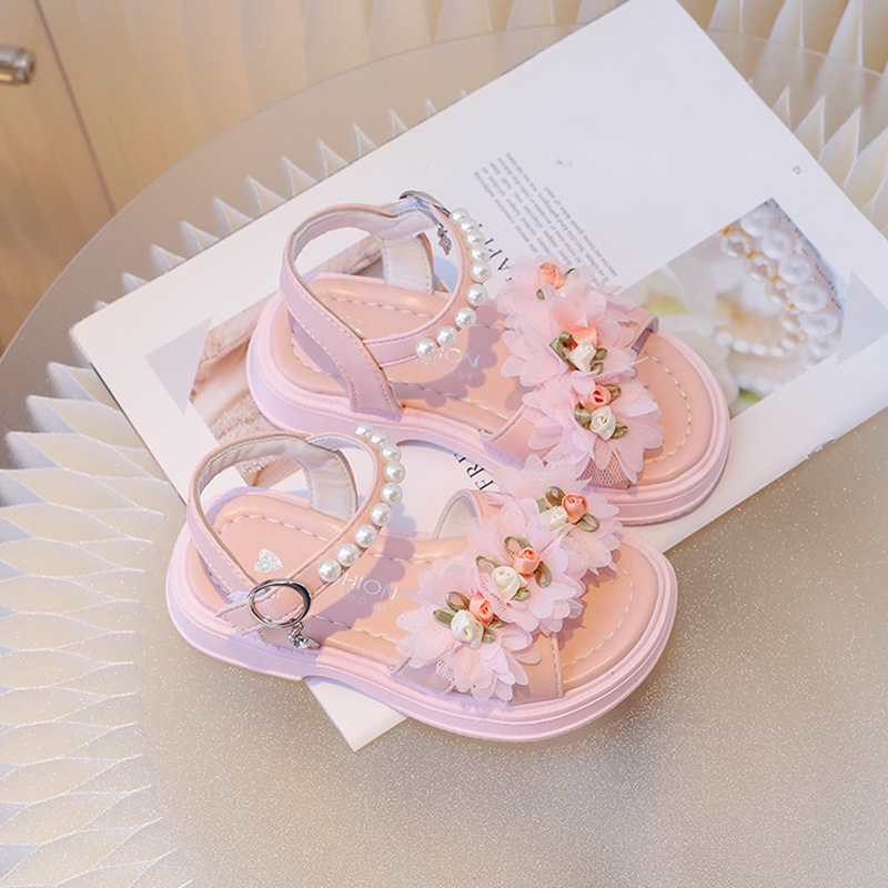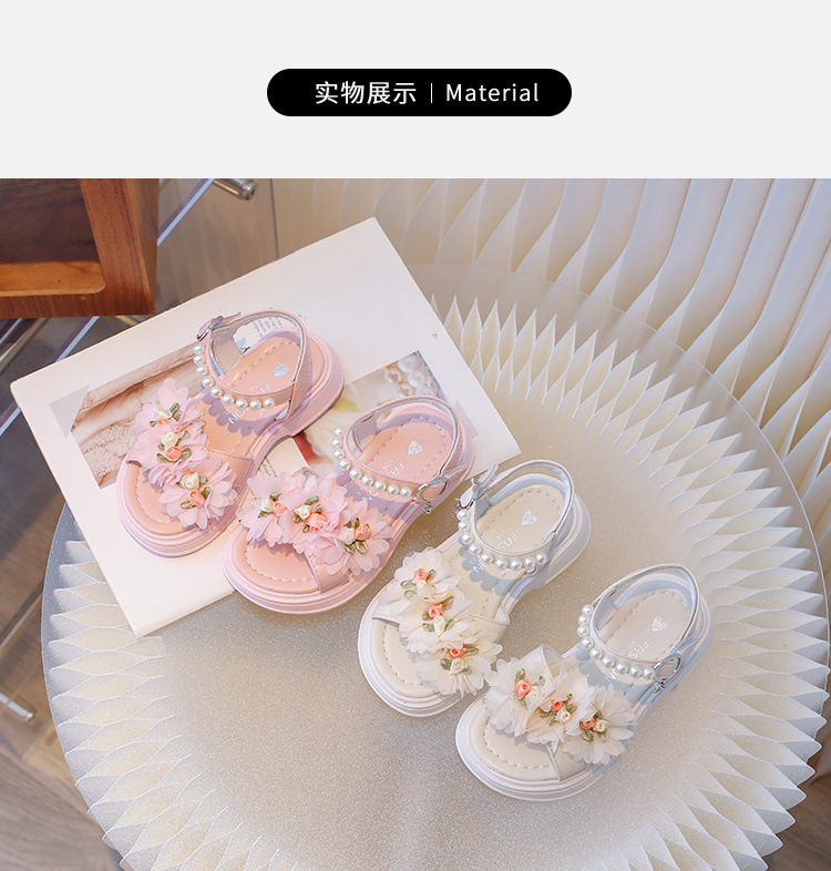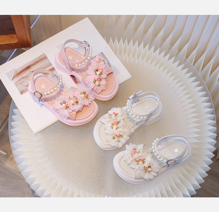 여자 샌들 2025 미끄럼 방지 여름 중대형 어린이 부드러운 바닥 진주 꽃 패션 어린이 공주 패션 어린이 신발스토어 가기