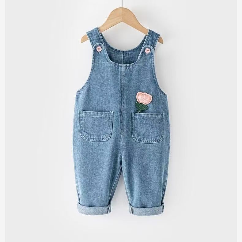 여아 데님 작업복 봄 신작 아동 패션 바지 봄, 가을 베이비 베이비 점프 슈트 하이 웨이스트