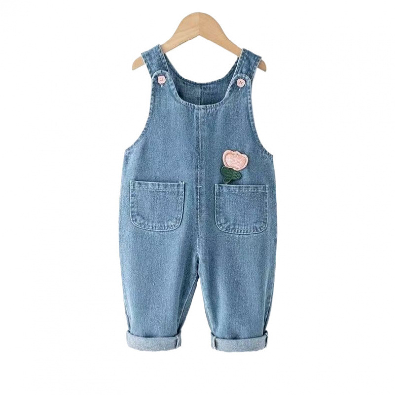 여아 데님 작업복 봄 신작 아동 패션 바지 봄, 가을 베이비 베이비 점프 슈트 하이 웨이스트스토어 가기