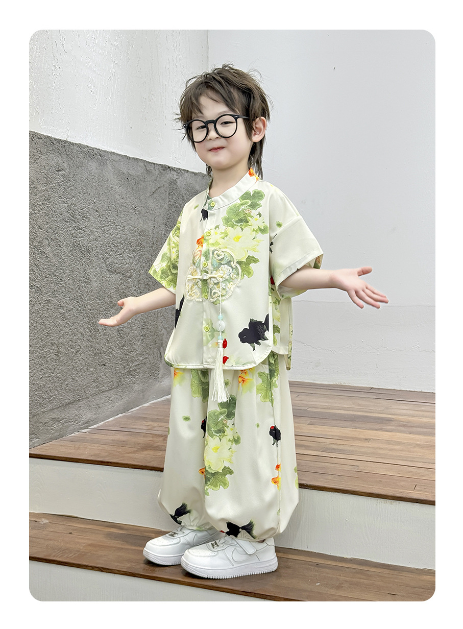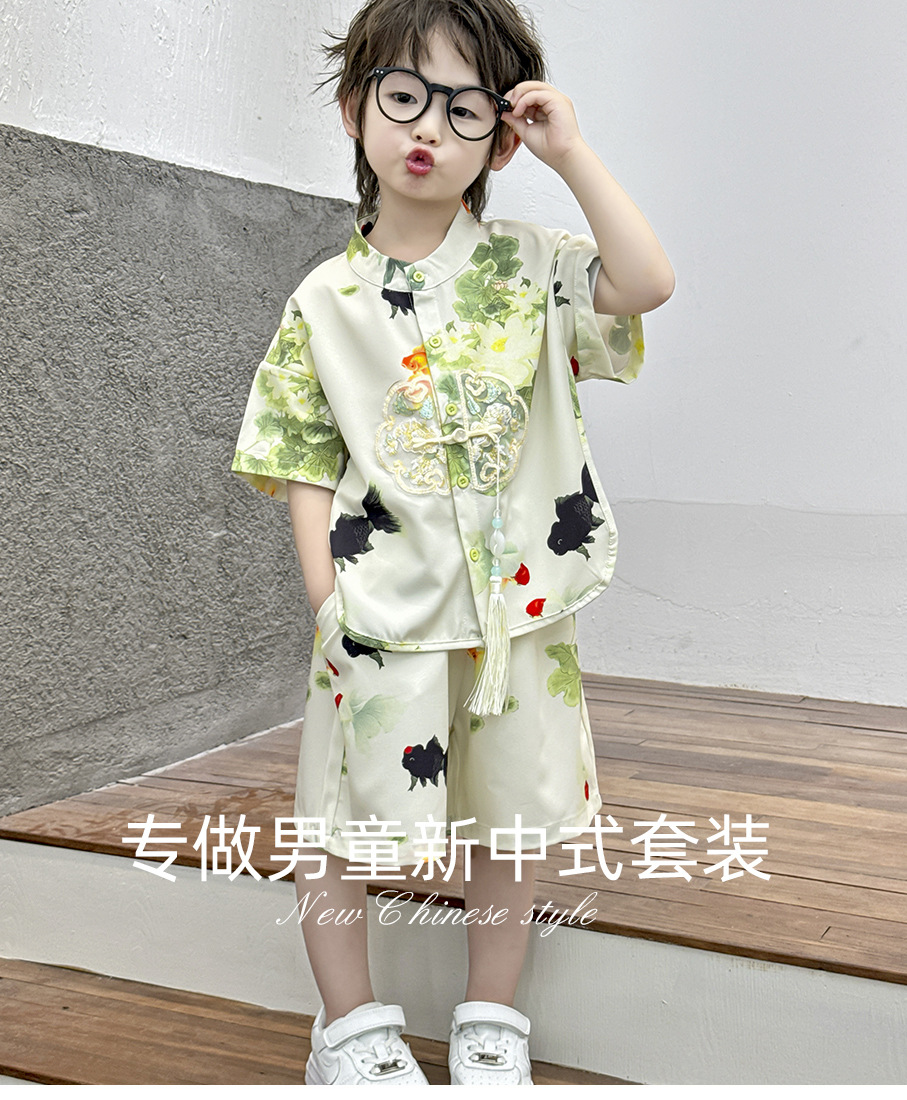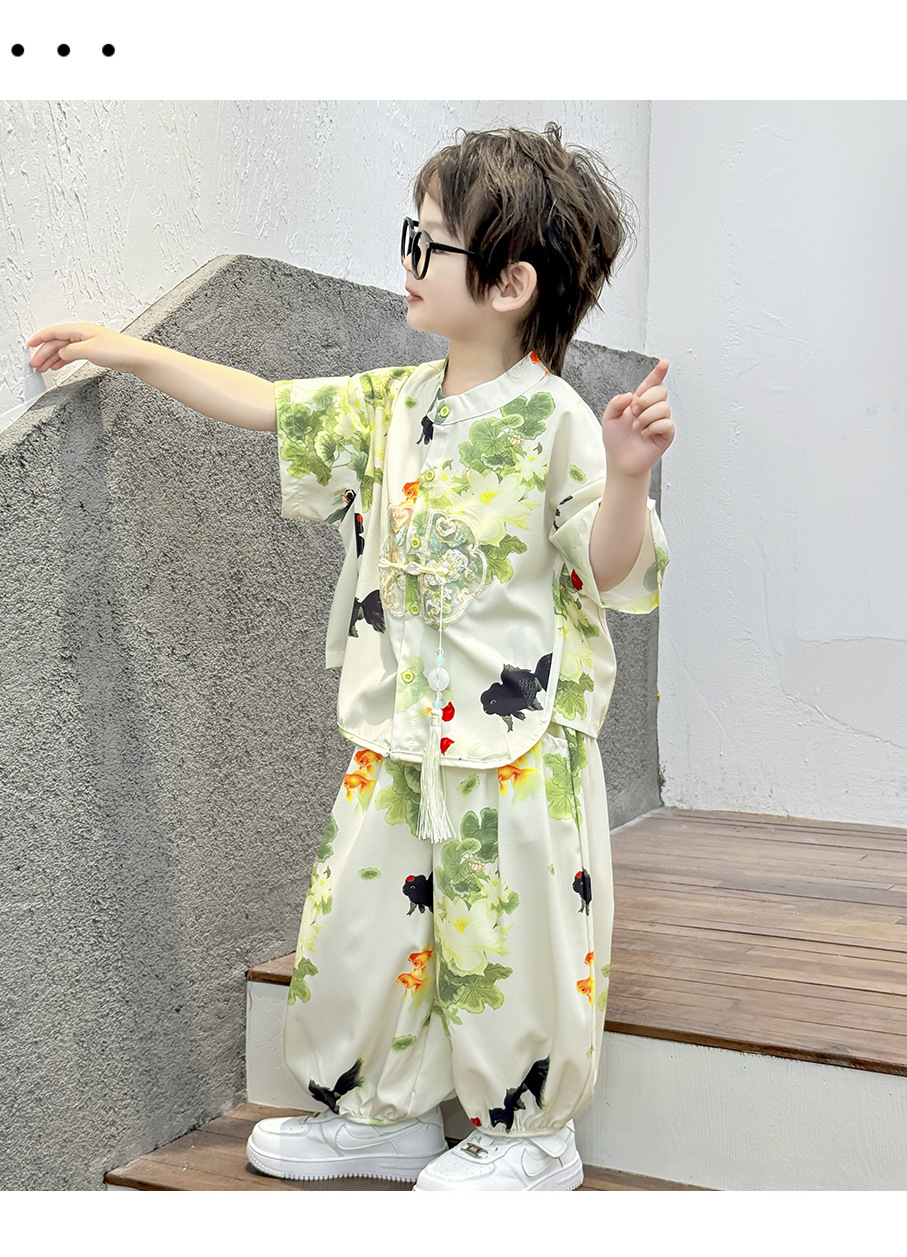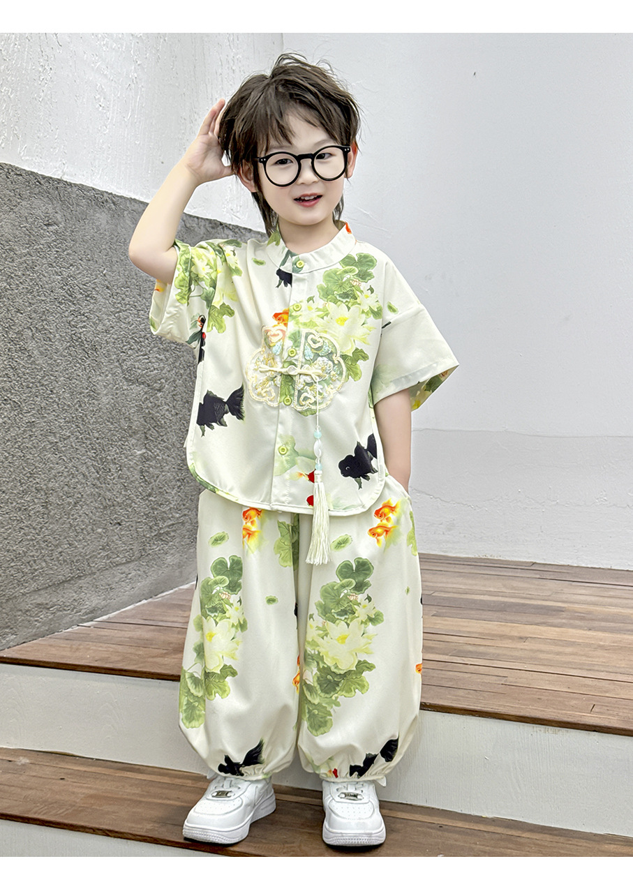 새로운 중국 스타일 소년 Hanfu 여름 얇은 아기 당나라 정장 고대 스타일 잘 생긴 어린이 의상 어린 소년 중국 스타일 아동 의류스토어 가기
