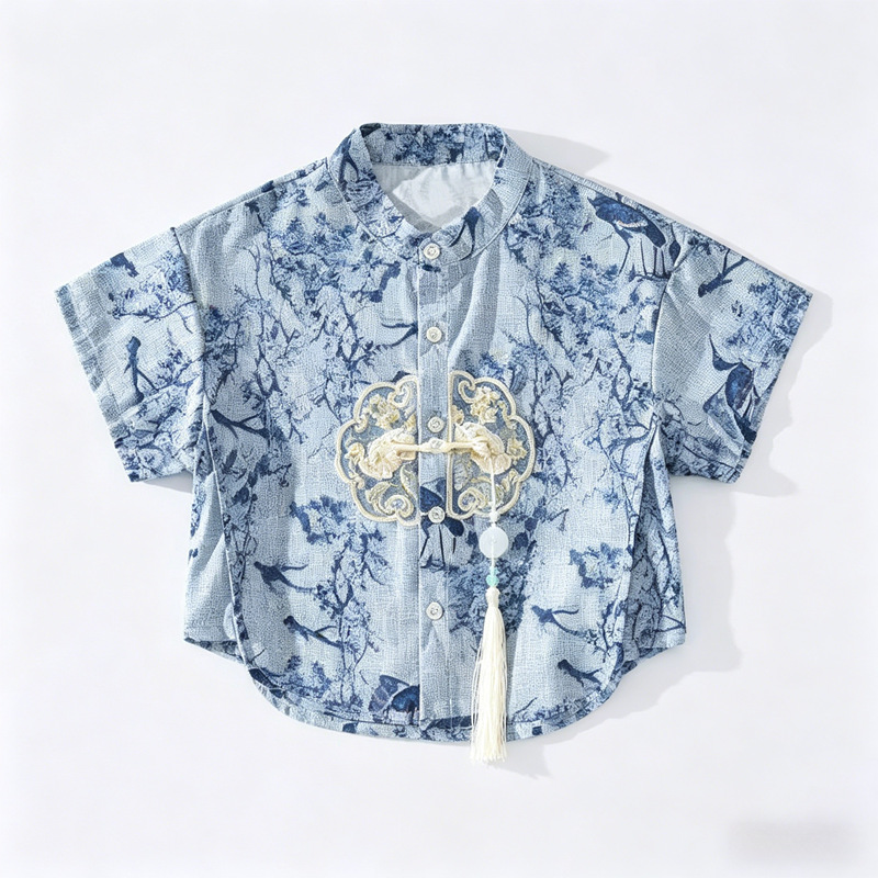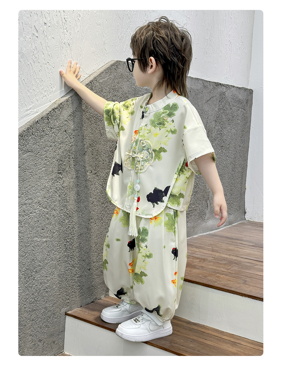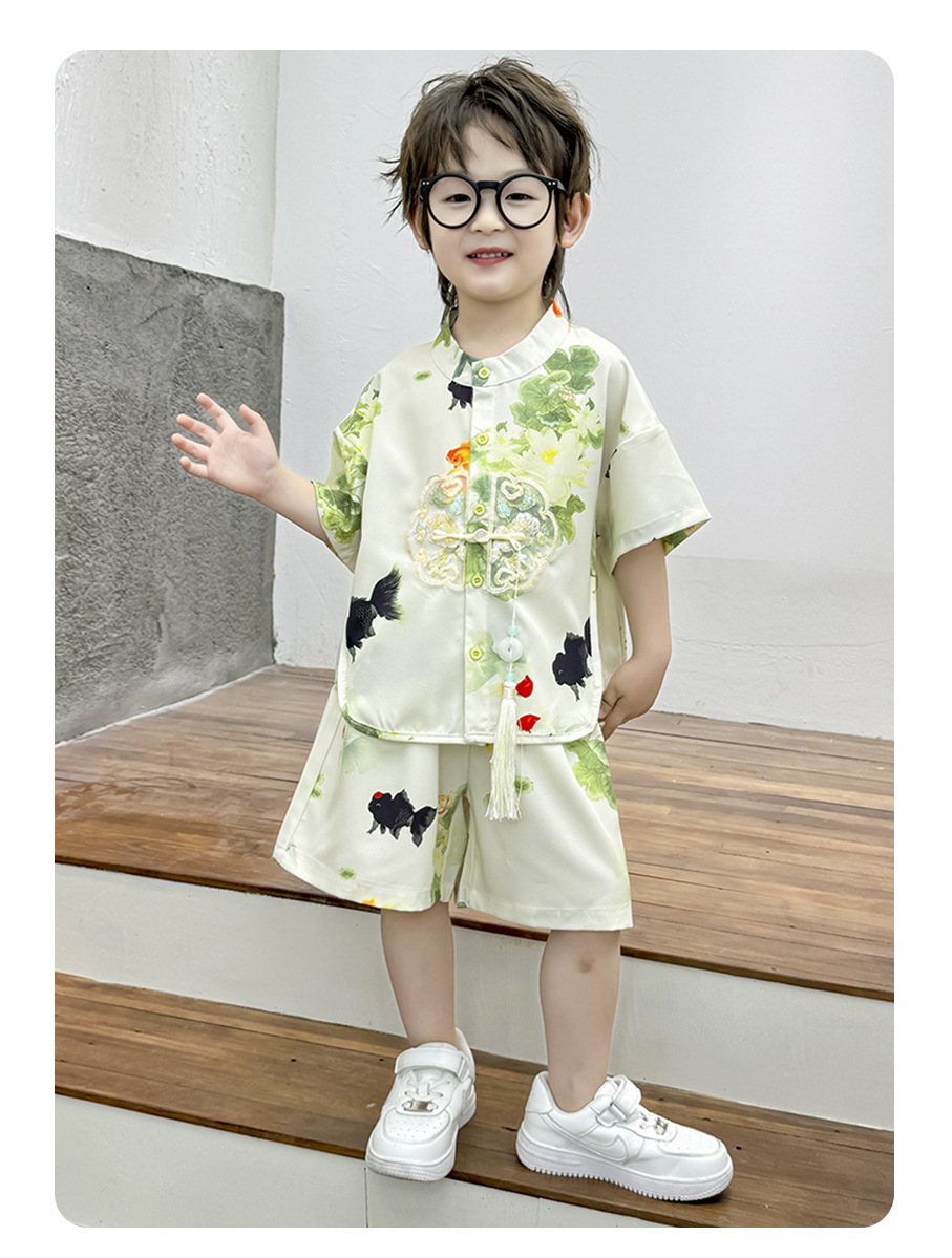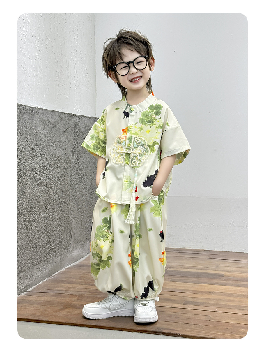 새로운 중국 스타일 소년 Hanfu 여름 얇은 아기 당나라 정장 고대 스타일 잘 생긴 어린이 의상 어린 소년 중국 스타일 아동 의류스토어 가기