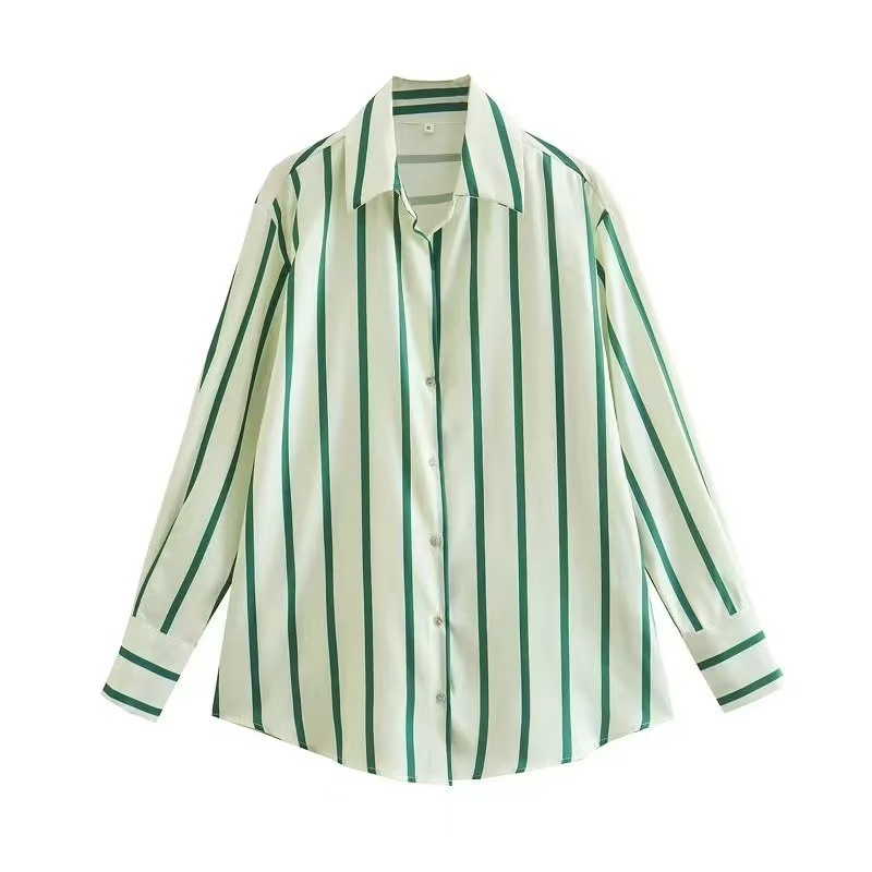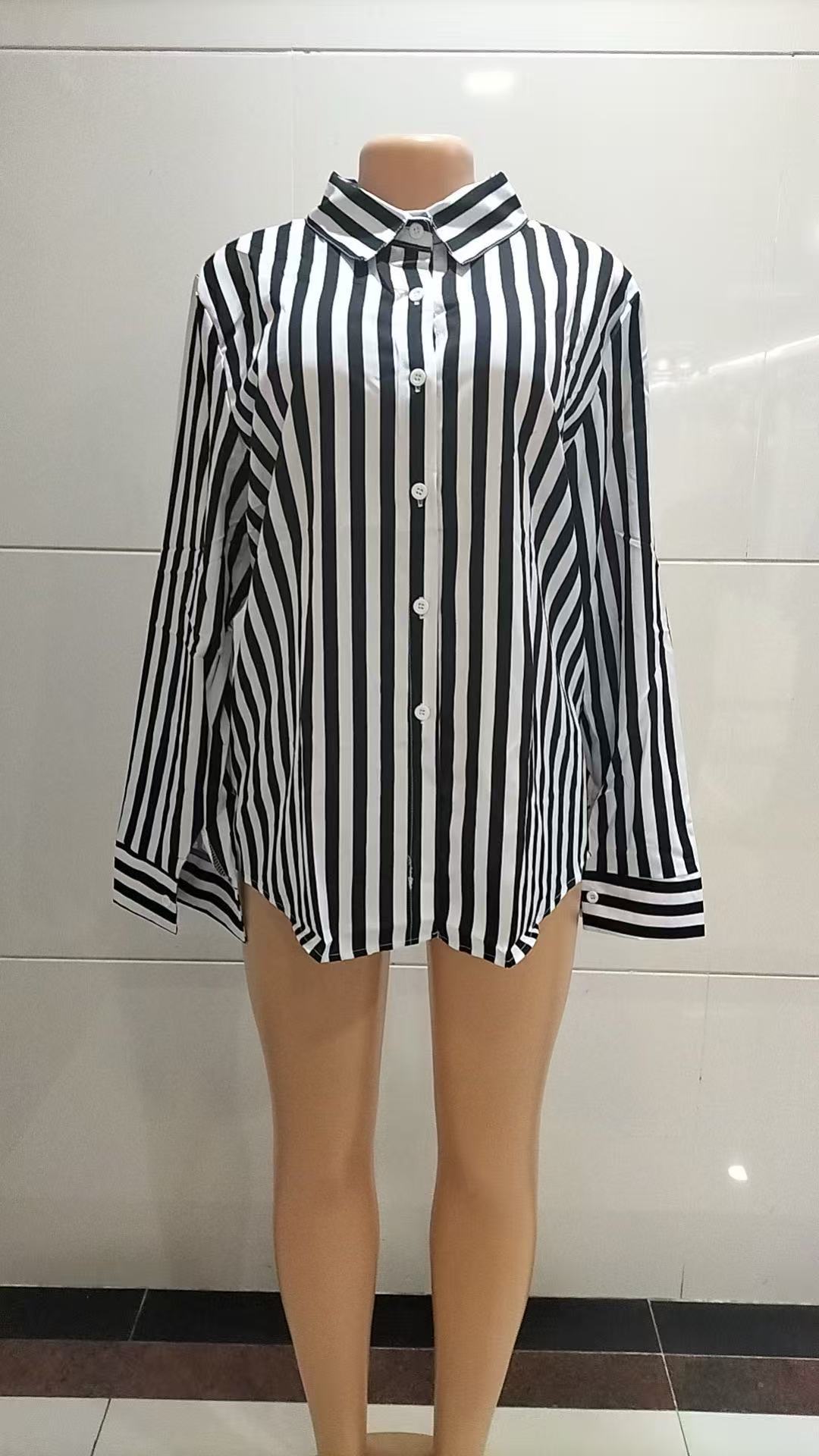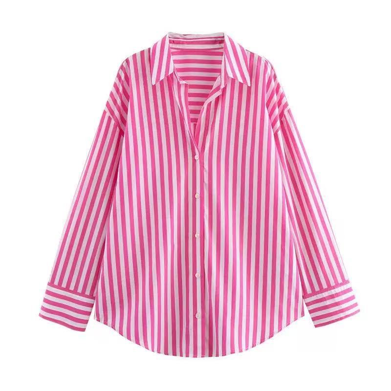 2025 대외 무역 도매 국경 간 유럽과 미국 스타일의 여성 의류 연령 감소 패션 줄무늬 느슨한 질감 드레이프 셔츠스토어 가기