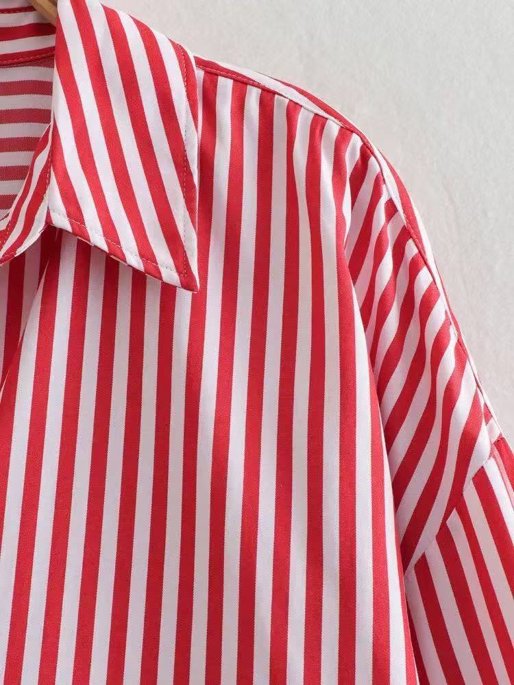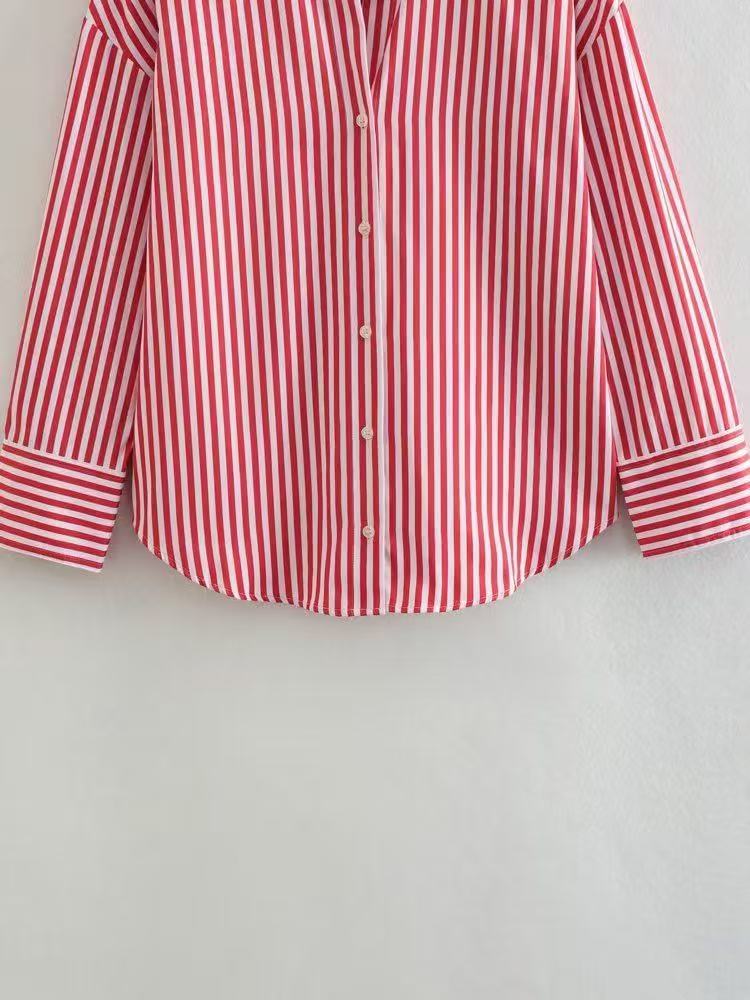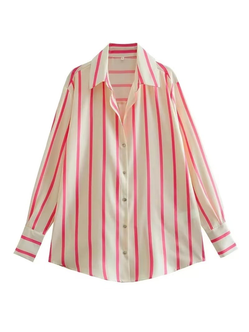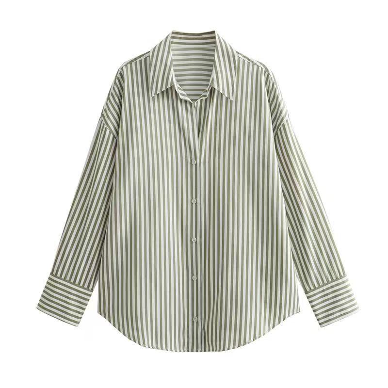 2025 대외 무역 도매 국경 간 유럽과 미국 스타일의 여성 의류 연령 감소 패션 줄무늬 느슨한 질감 드레이프 셔츠