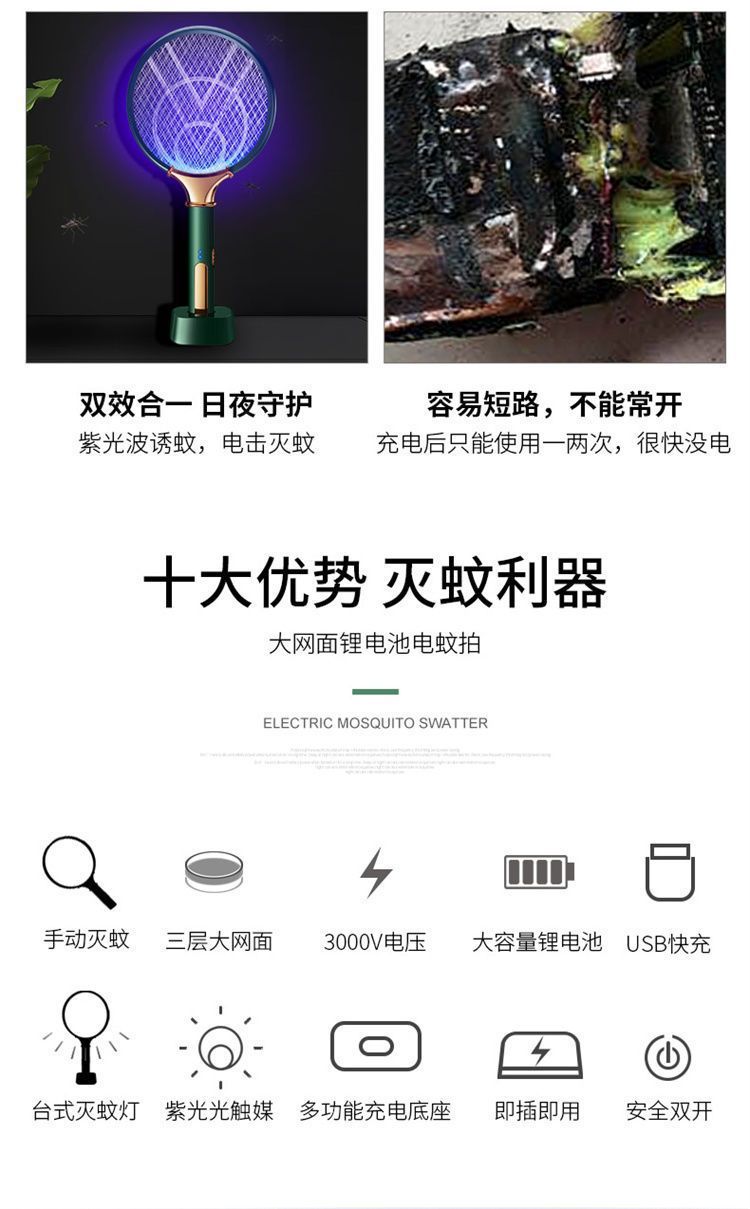 전기 모기채 충전식 강력한 다기능 모기 살해 램프 2-in-1 모기채 가정용 모기 살해 장치 전기 충격 파리채스토어 가기