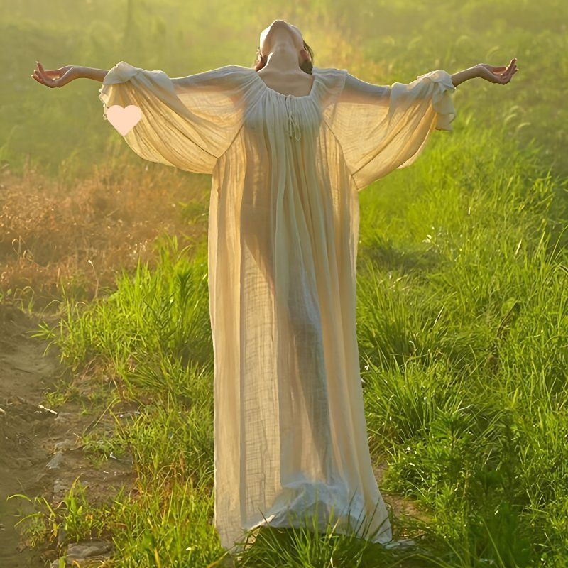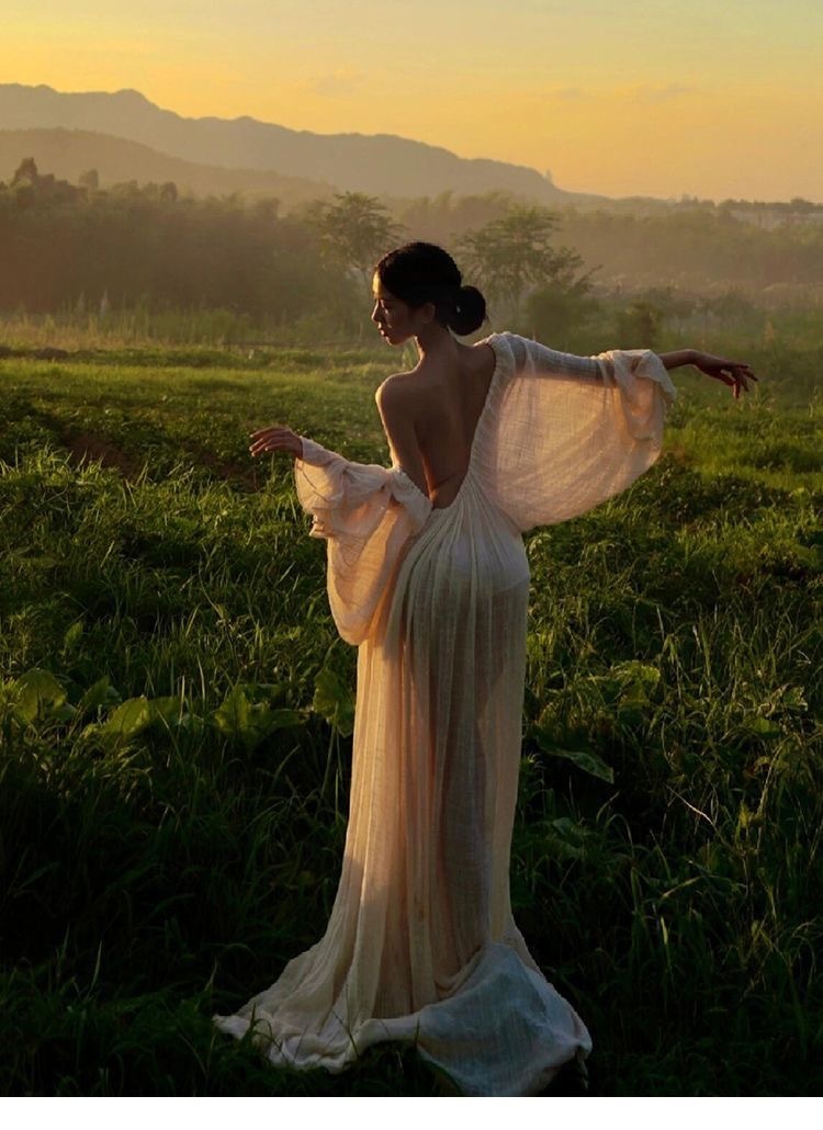 분위기 있는 백리스 드레스, 모닝 가운, 여성 드레스, 프렌치 젠틀 스타일, 우아하고 분위기 있는 루즈한 모닝 샷, 슈퍼 요정