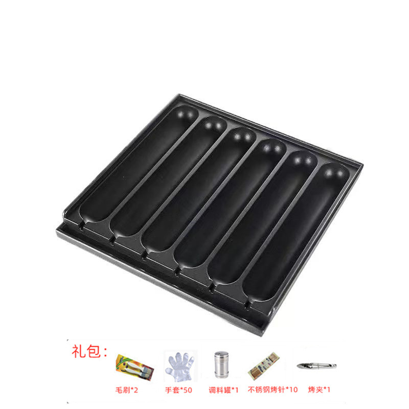 • 가정용 알루미늄 합금 [6관 소시지 팬] - 두꺼운 단일 베이킹 팬 [오일 탱크 포함]