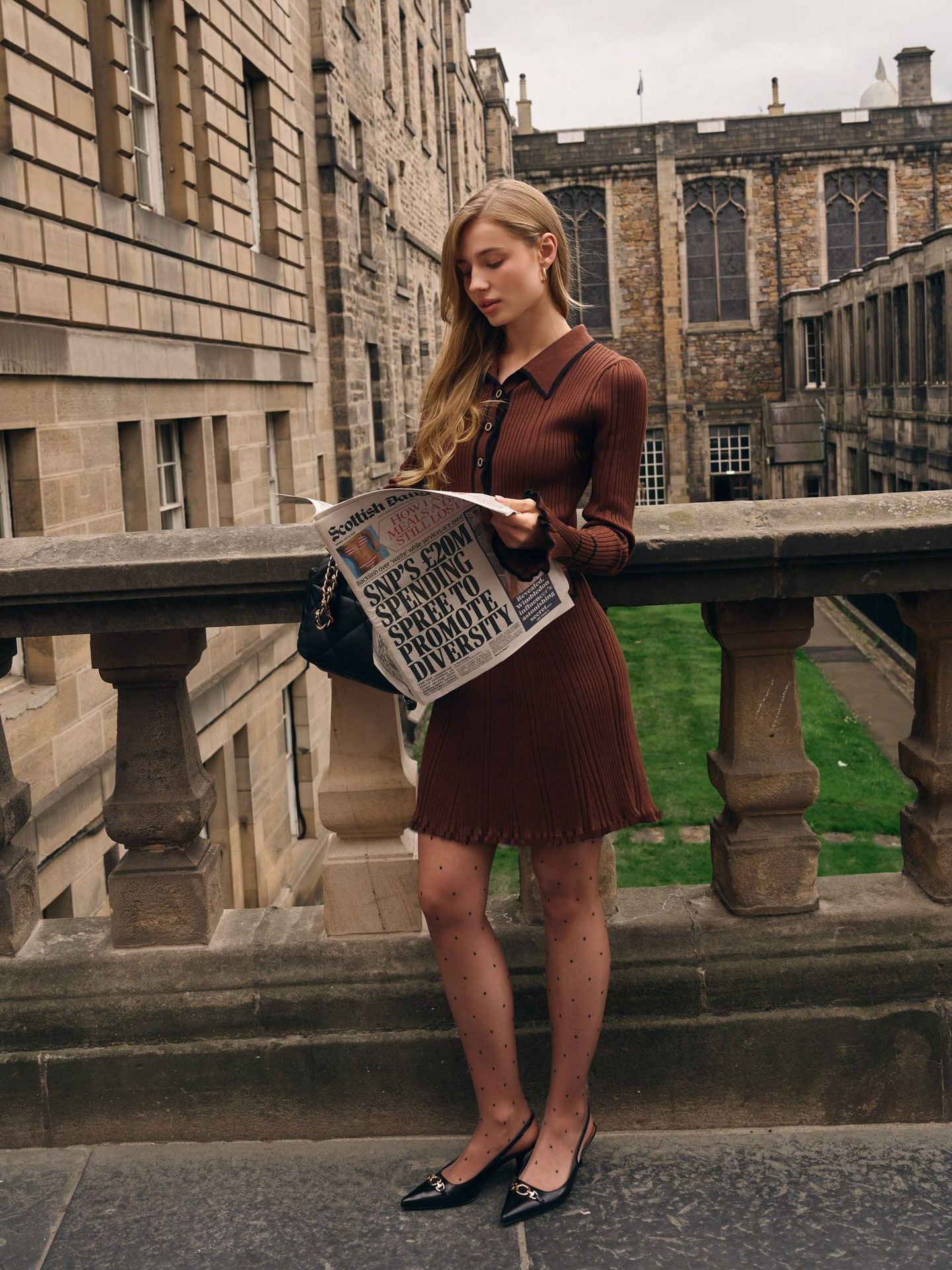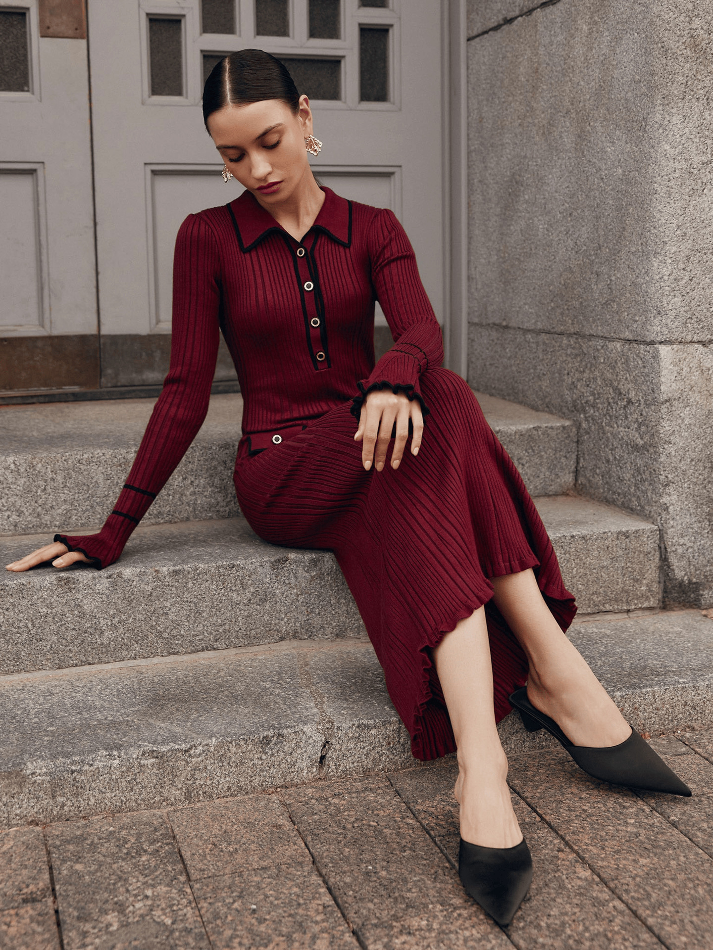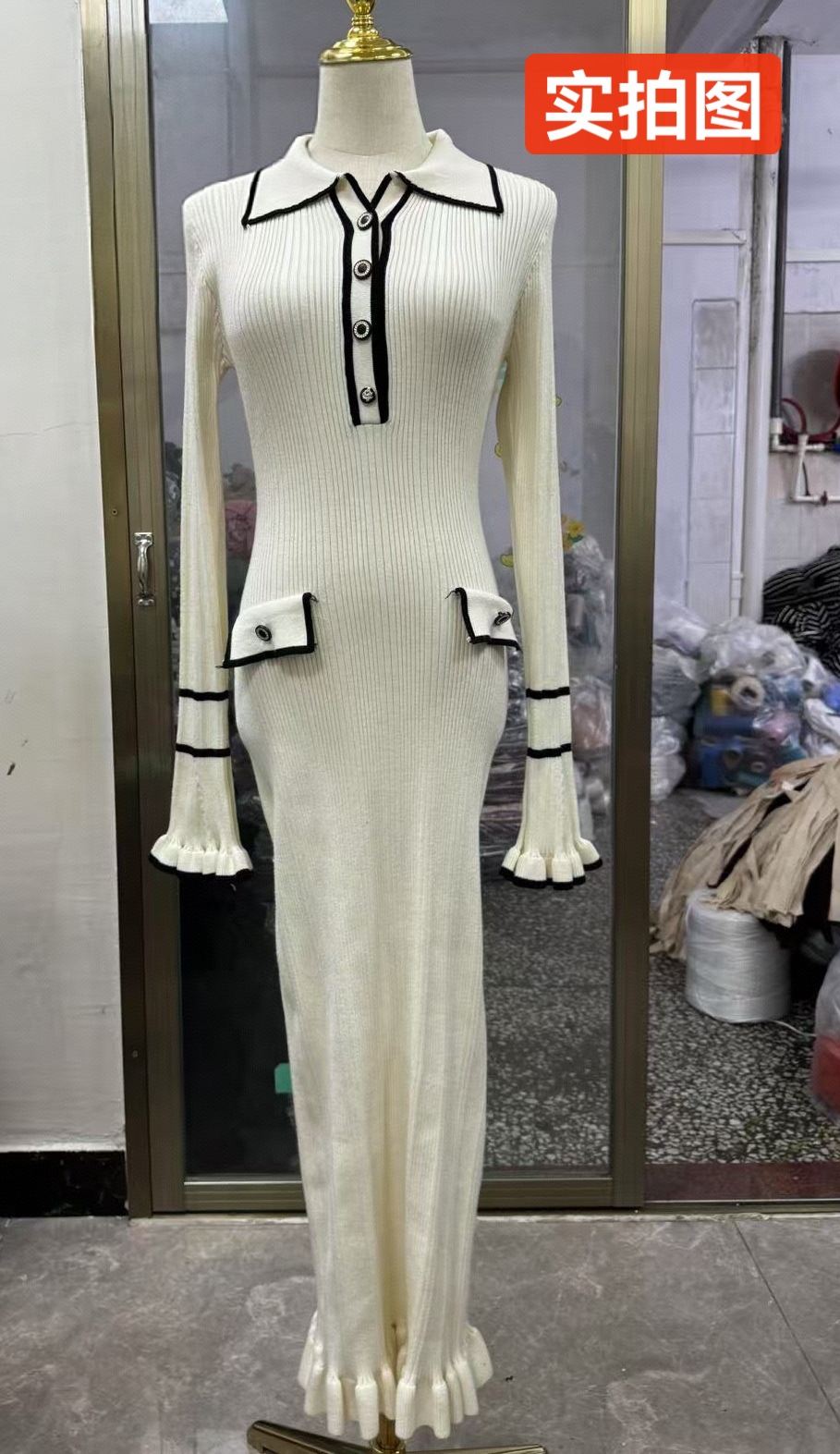 프렌치 라이트 럭셔리 러플 니트 드레스 2025 유럽과 미국의 새로운 가을, 겨울 스웨터 드레스 라펠 타이트 미디 스커트스토어 가기