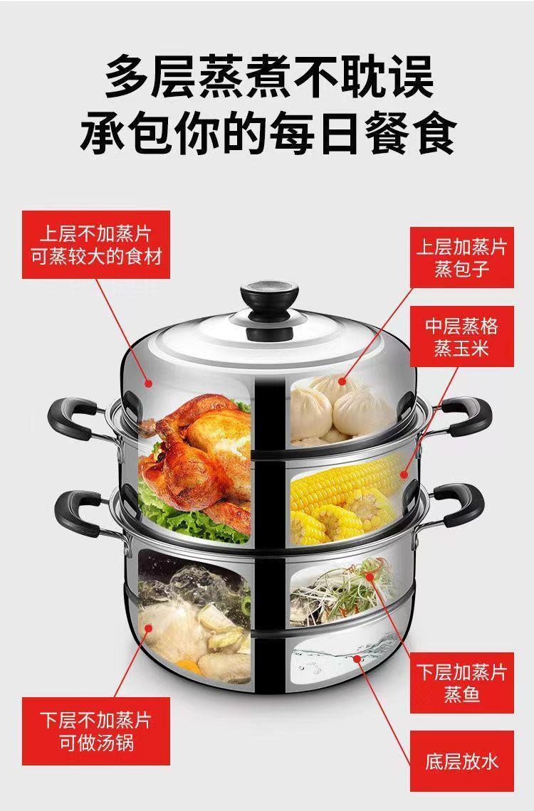 스테인레스 스틸 3층 두꺼운 대형 찜통 찐빵 가정용 소형 1쌍 2층 전자레인지 가스레인지