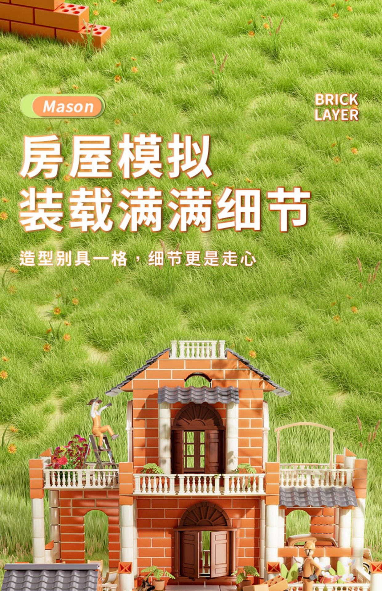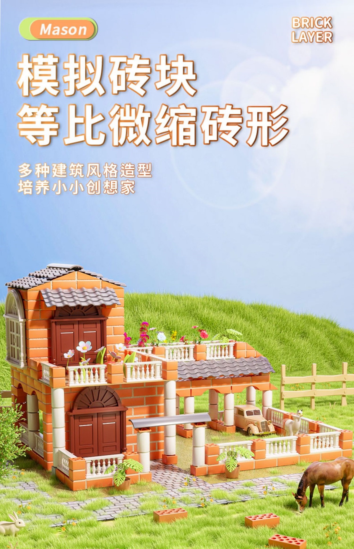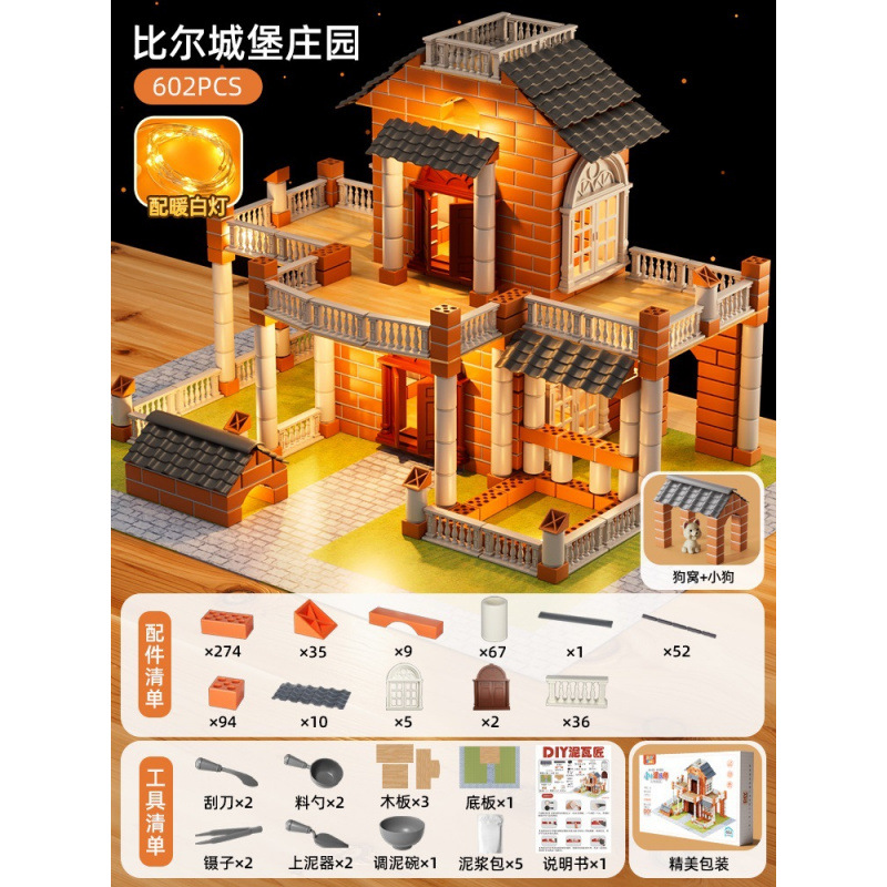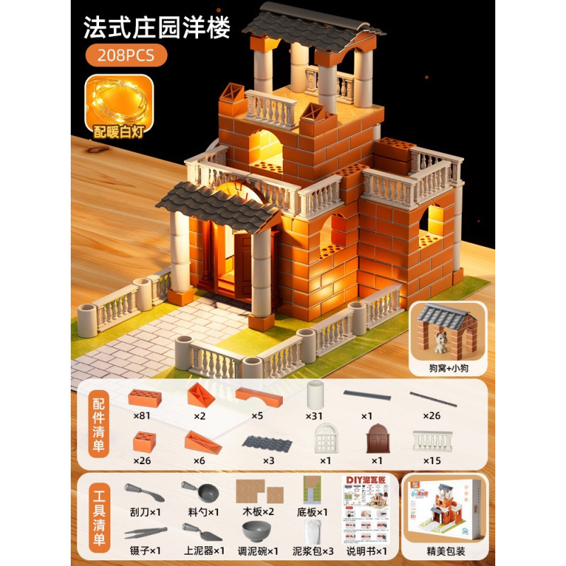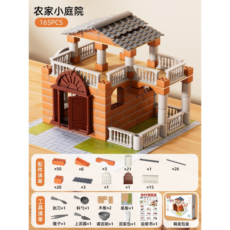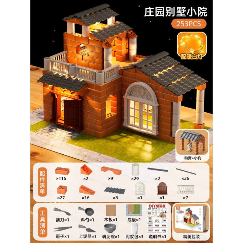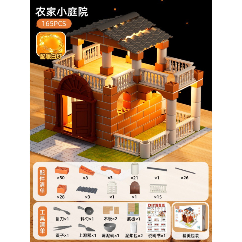 벽돌 수제 집 캐빈 벽 시멘트 DIY 선물 어린이 미니 벽돌공 건축가 장난감스토어 가기