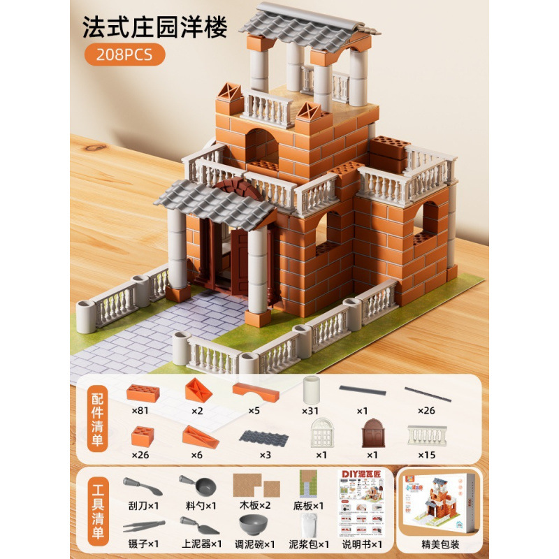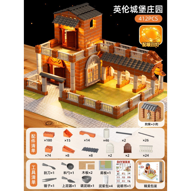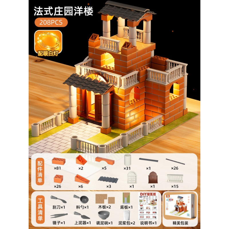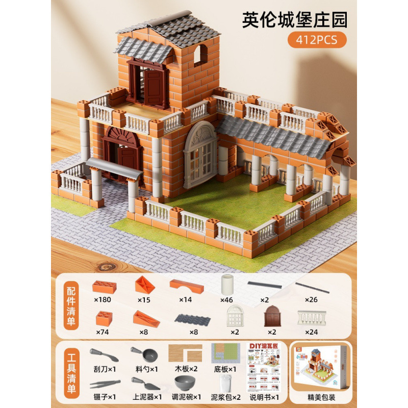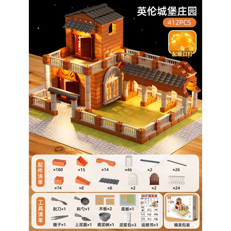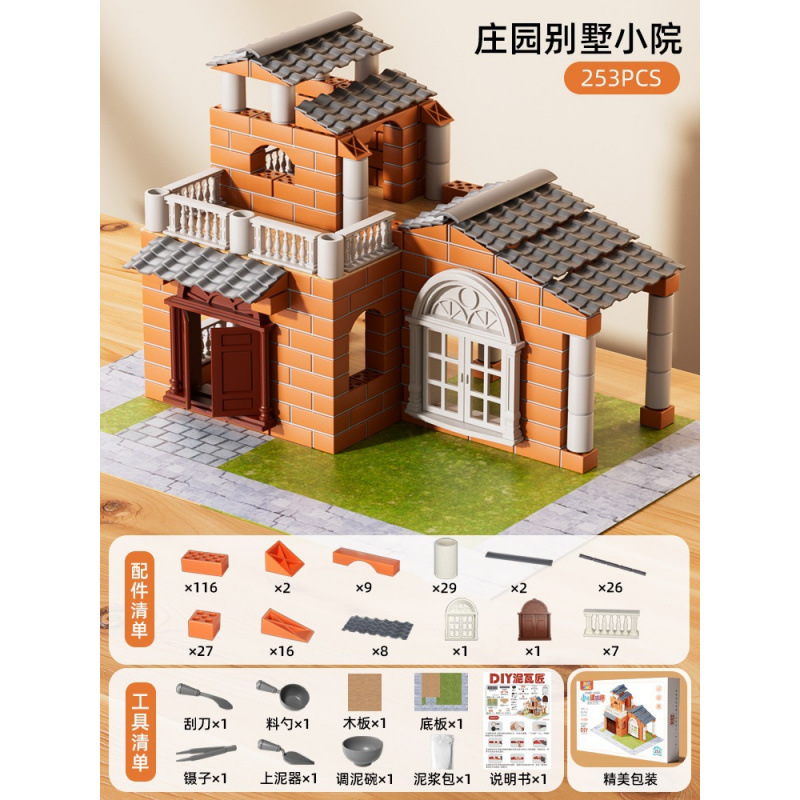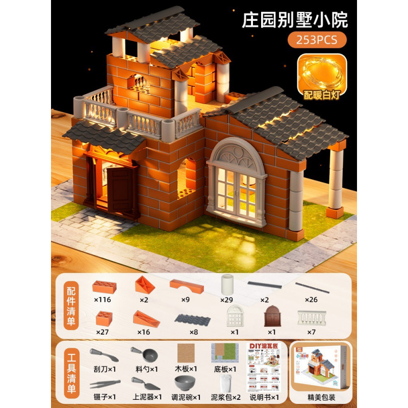 벽돌 수제 집 캐빈 벽 시멘트 DIY 선물 어린이 미니 벽돌공 건축가 장난감